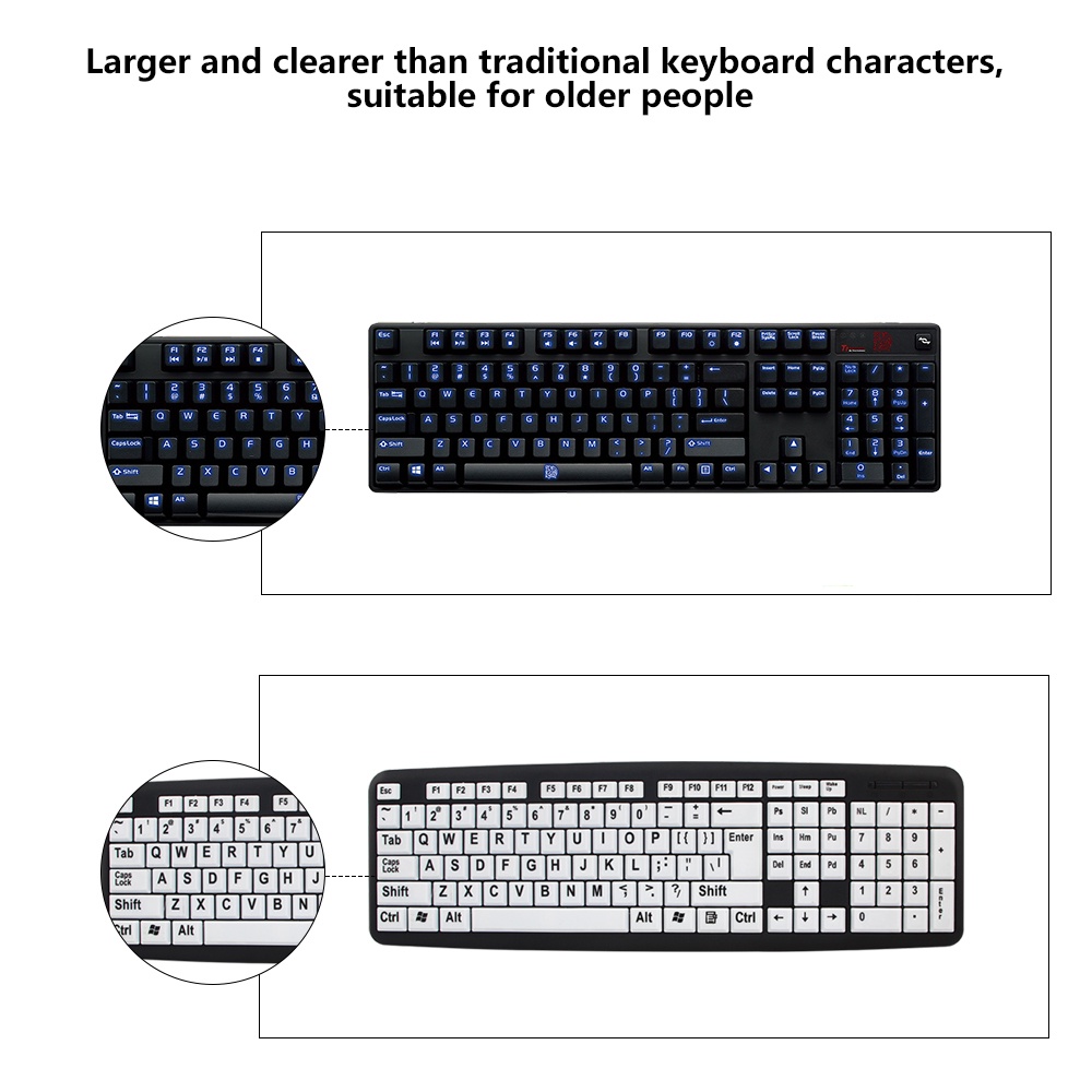 107 Keys Keyboard Wired Keyboard Large Print Computer Keyboard Traditional Keypad Large Font Bold For Elderly Students And Students
