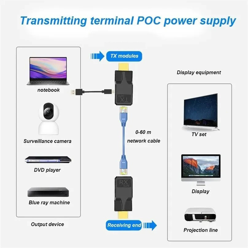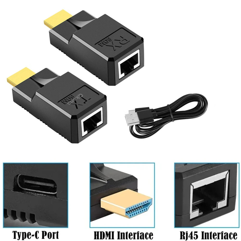 1080P 60M HDMI To RJ45 Ethernet Extender Over Cat5e Cat6 Network Cable HDMI Ethernet Extender Audio Video Transmitter and Receiver Converter Adapter for Camera PC Loptop TV Monitor