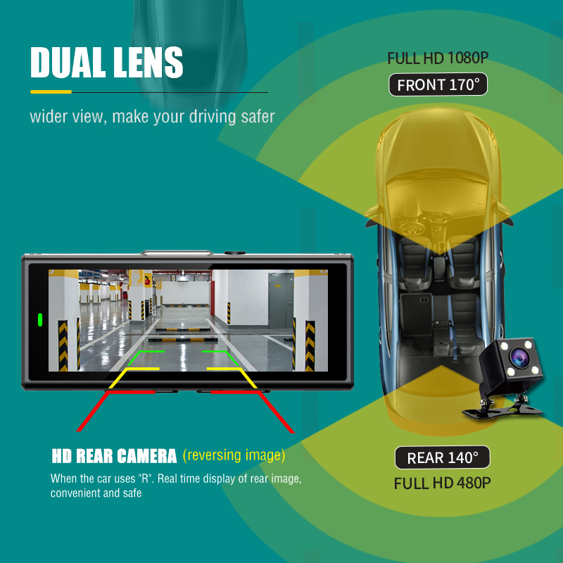1080P Dual Channel Front & Rea Car Camera Driving Recorder 3.16"IPS Car Recorder Night Vision Dash Cam FULL HD