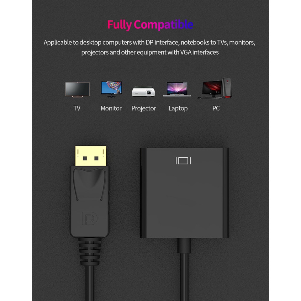 1080P HD Displayport To VGA Converter DP Male To VGA Female Cable Interface Adapters Video For Monitor PC Laptop HDTV Projector