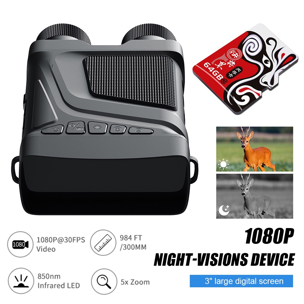 1080P HD Infrared Binoculars Night Vision Device 5X Digital Zoom Hunting Telescope Outdoor Day Night Dual Use Powerful Night Vision Monocular Thermal Hunting Camera