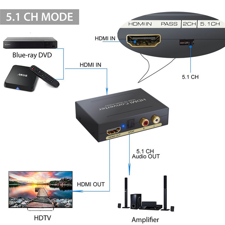 1080P HDMI Audio Extractor HDMI to Optical Toslink Spdif R/L RCA Analog Video Adapter HDMI to HDMI splitter with Audio Converter