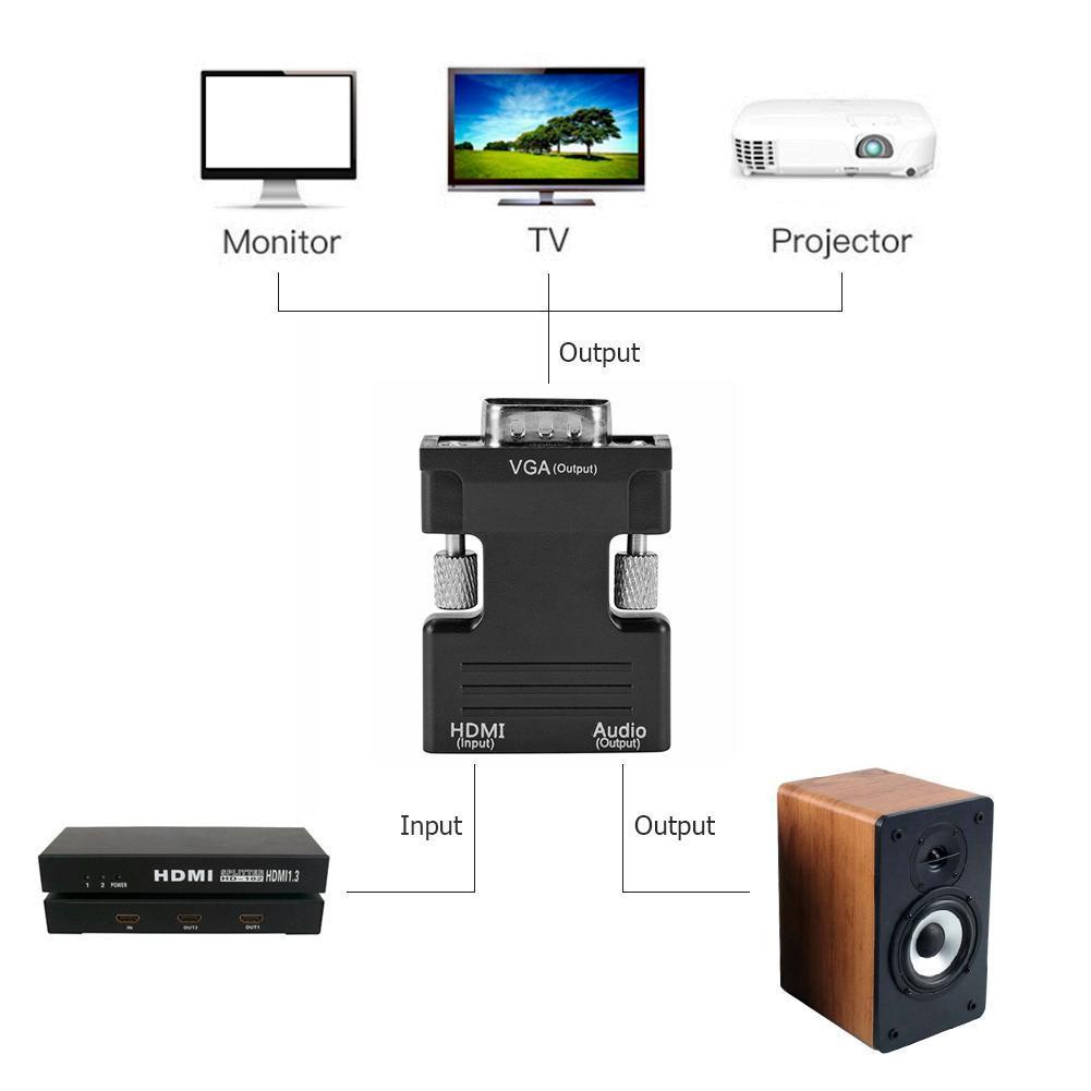 1080P HDMI Female to VGA Male with Audio Output Cable Converter