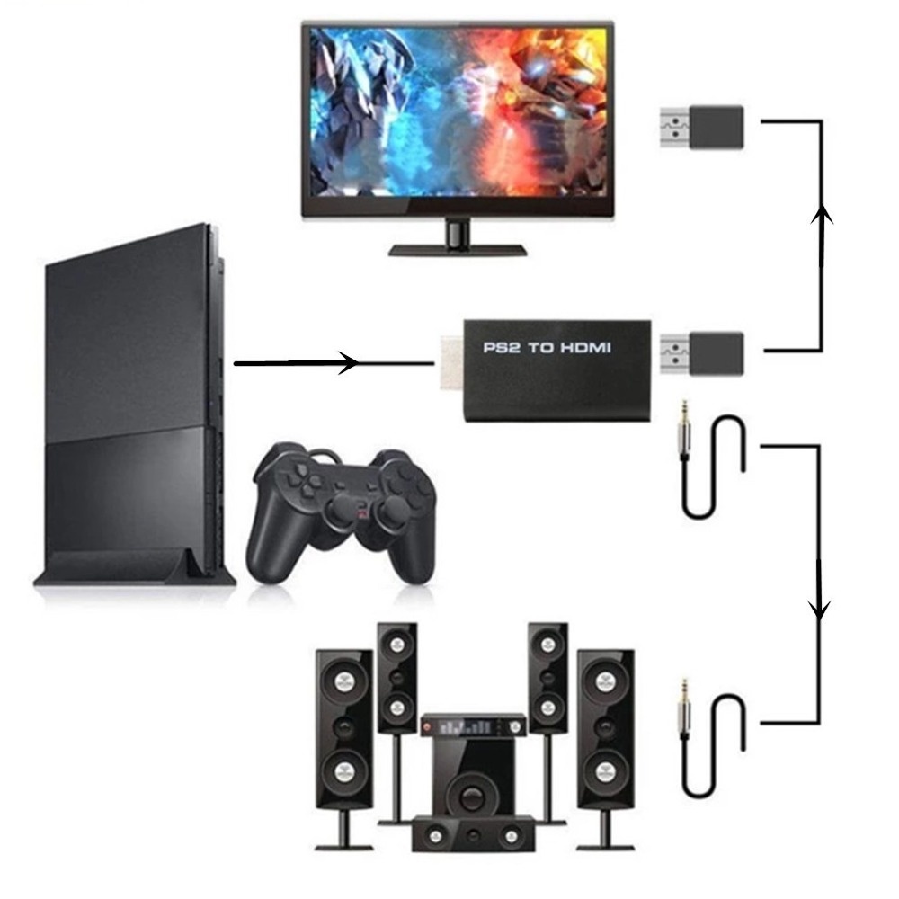1080P PS2 to HDMI Compatible Audio Video Converter Adapter Support PS1/2/3 Display Mode HDTV PC Full HD Cable Adapter