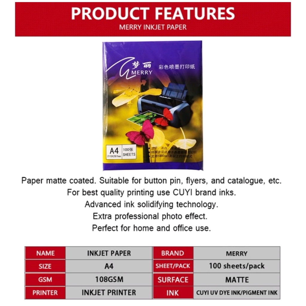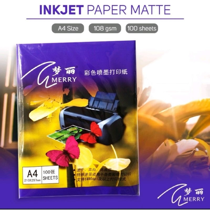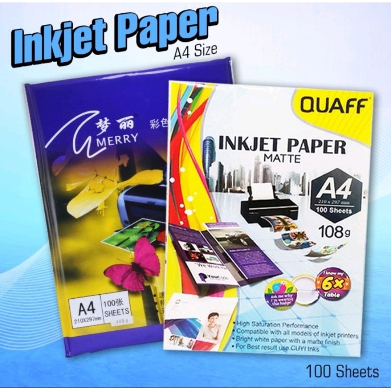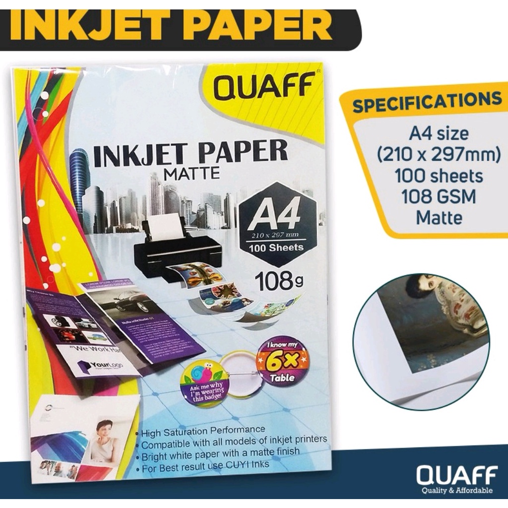 108gsm Matte Inkjet Paper A4 Size QUAFF & MERRY (100sheets/pack)