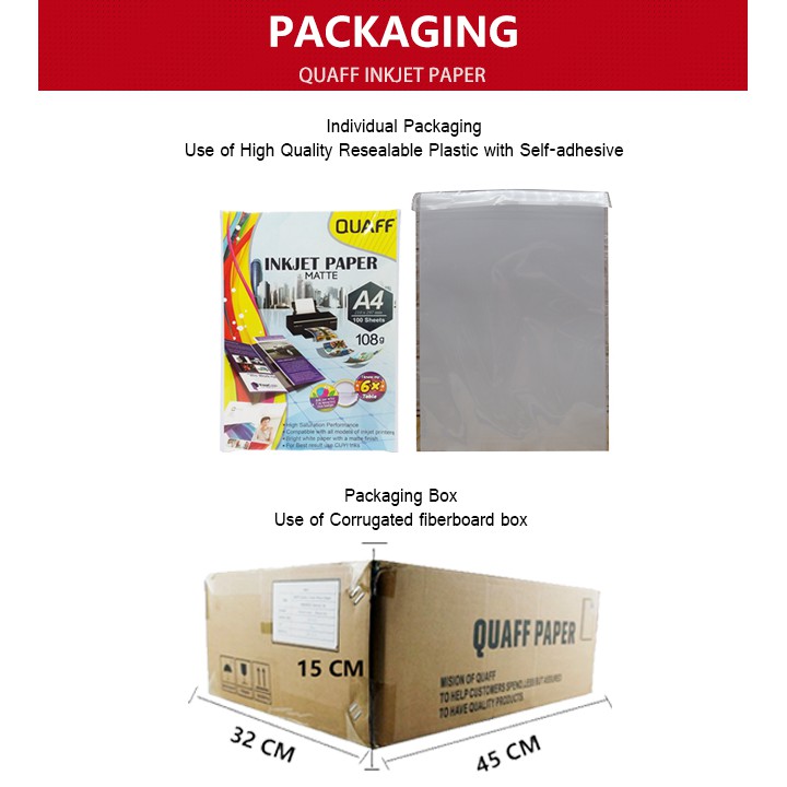 108gsm QUAFF Matte Inkjet Paper A4 Size || Merry 108gsm Matte Inkjet Paper A4 (100 sheets / pack)