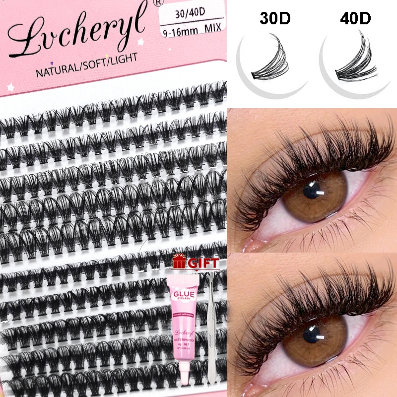 10D/20D/30D/40D Eyelash Extension Set With Glue 200 Bundles D Curl Human Hair Individual Eyelashes