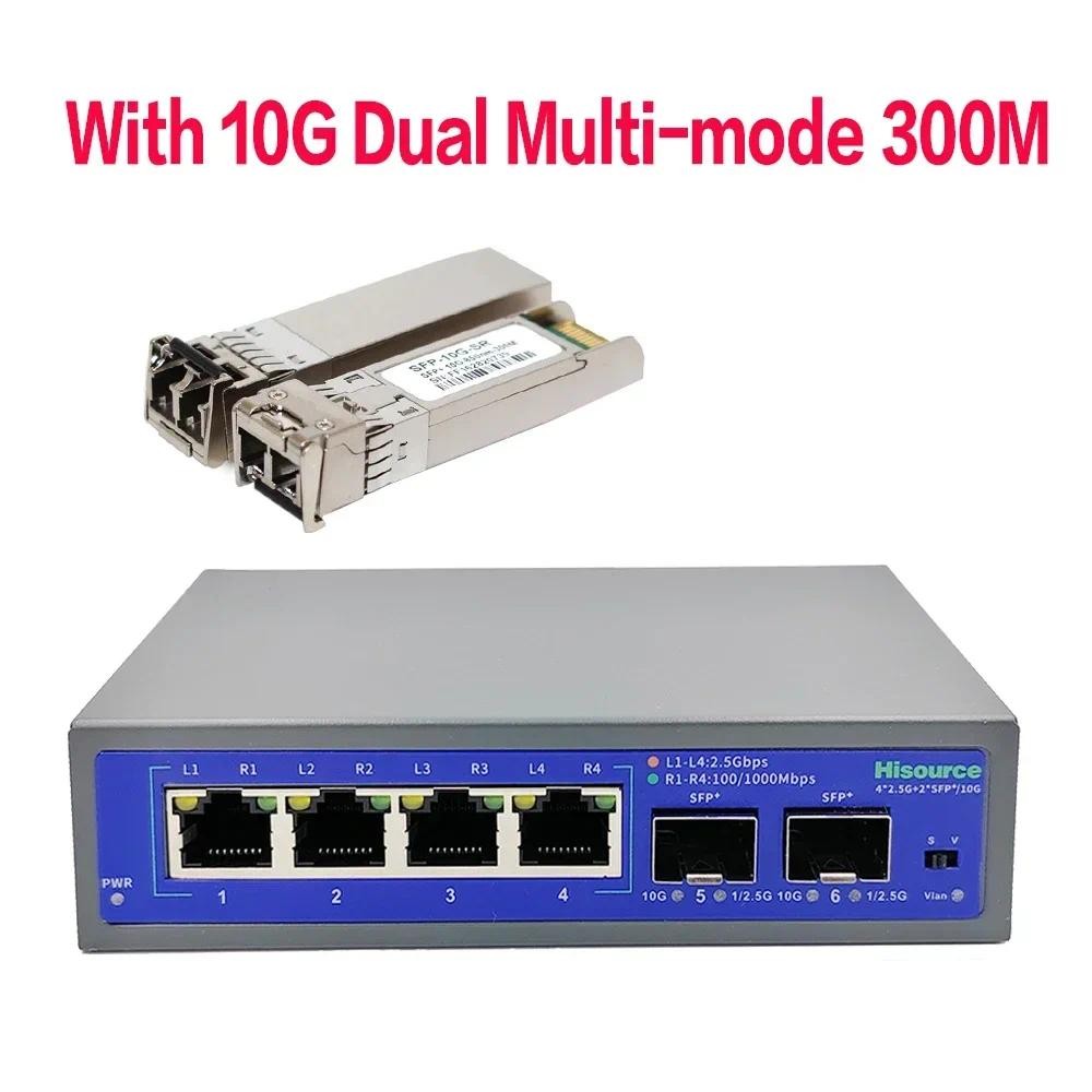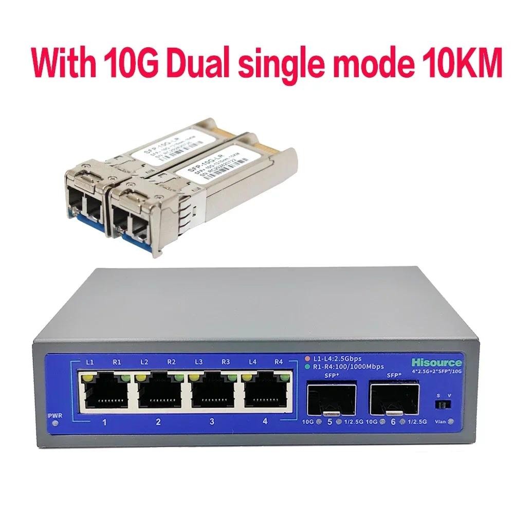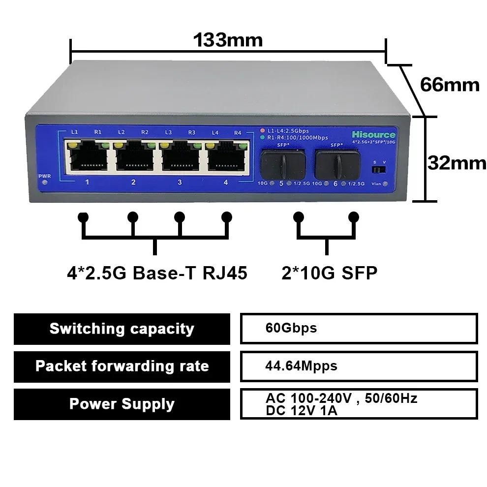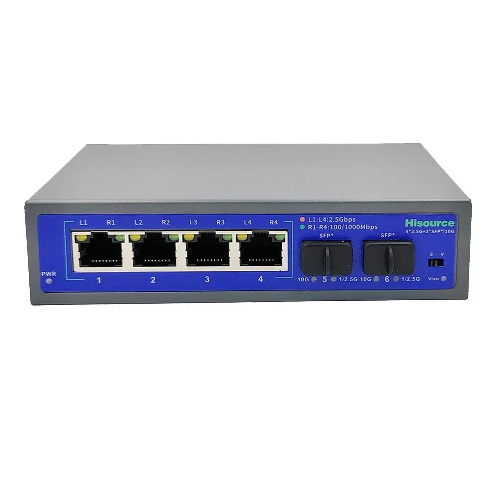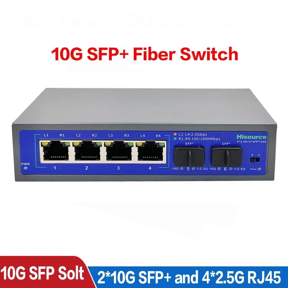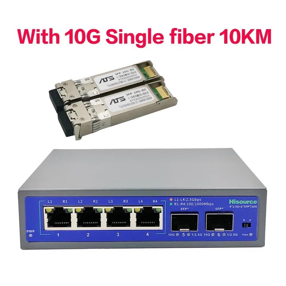 10G SFP+ fiber Switch 2.5Gbps Ethernet 4 Port 2500Mbps Network Switcher 2 Port 10G SFP+ Slot Hub Internet Splitter Plug and Play