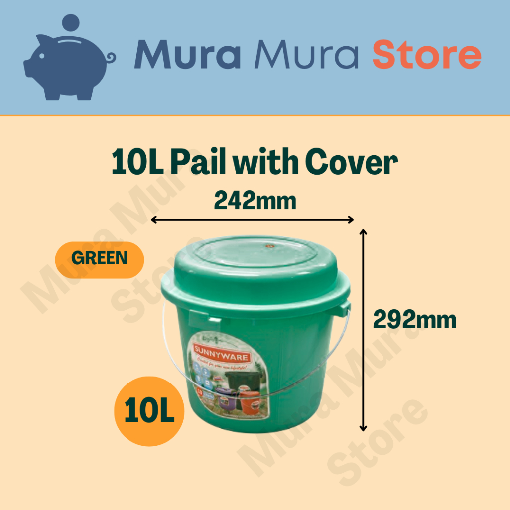 10L Pail w/ Cover Green | Timba | Bucket w/ Handle