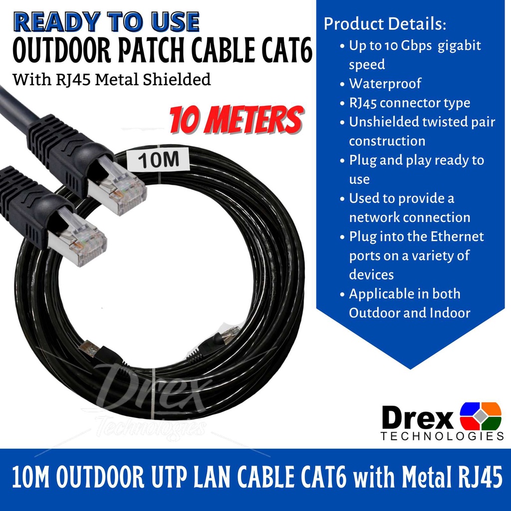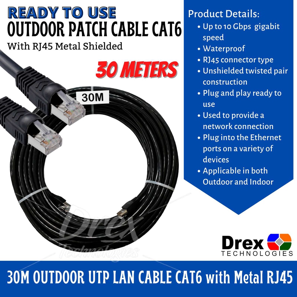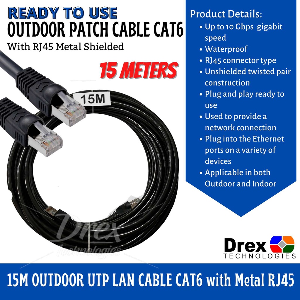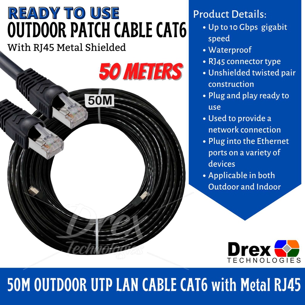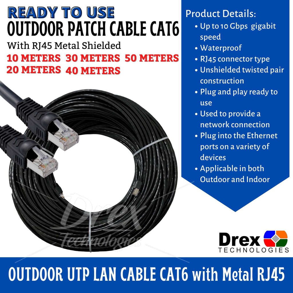10M 15M 20M 30M 40M 50M Meters Outdoor Utp Lan Cable Cat6 W Metal Rj45 Ready To Use 1000Mbps