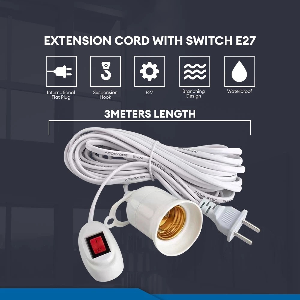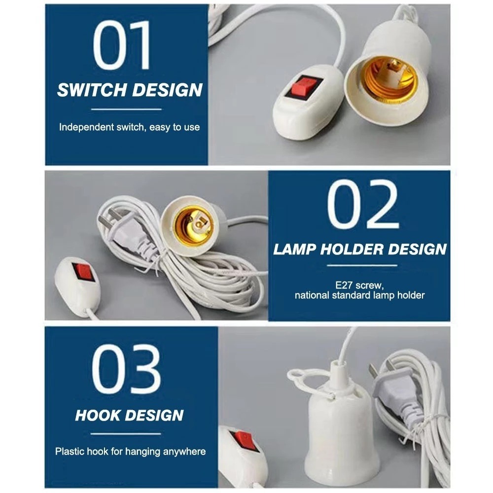 10M/5M/3M bulb socket with outlet Lamp Bulb Holder With Switch LED Light Bulb Extension Socket