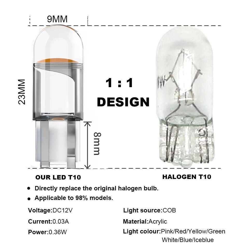 10PCS 24V W5W Led T10 Car Light COB Glass 6000K White Auto Automobiles License Plate Lamp Dome Read DRL Bulb Style Accessories