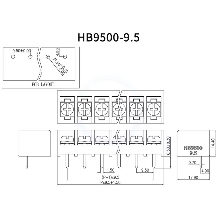 10PCS HB9500 2p 3p 4p 5p 6p 7p 8p 9P PCB Screw Terminal Block Connector Pitch 9.5MM Black/Green