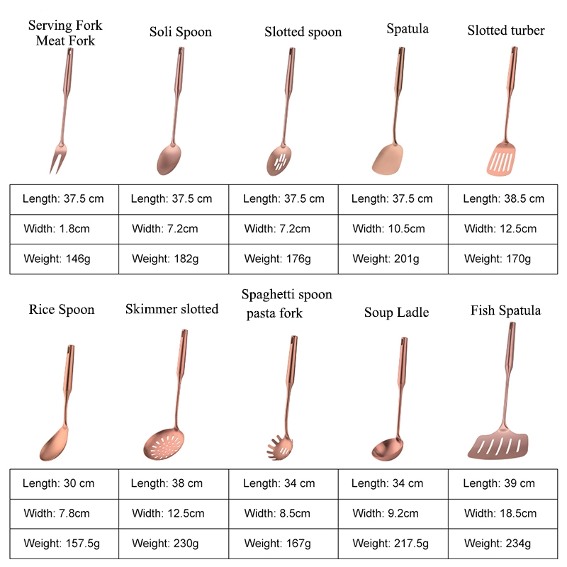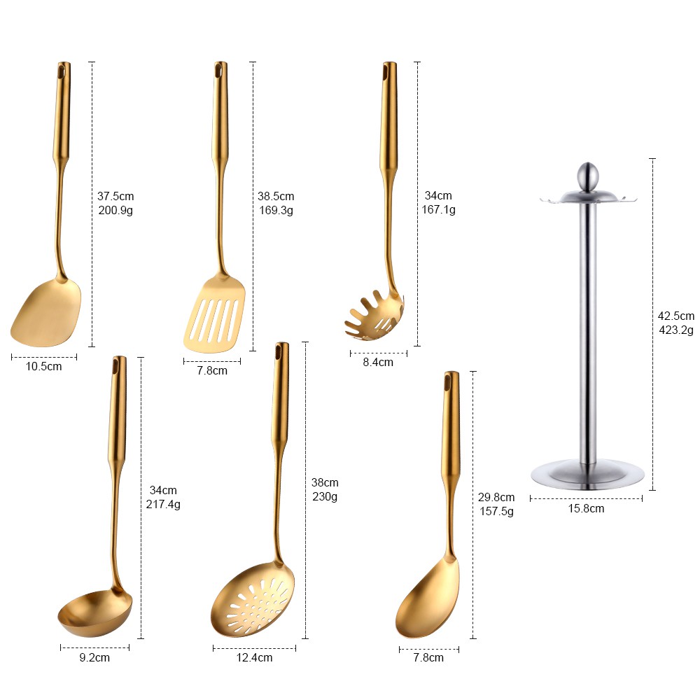 10PCS Stainless Steel Cookware Long Handle Kitchen Set Gold Cooking tools Scoop Spoon Turner Ladle Kitchen Utensils Set