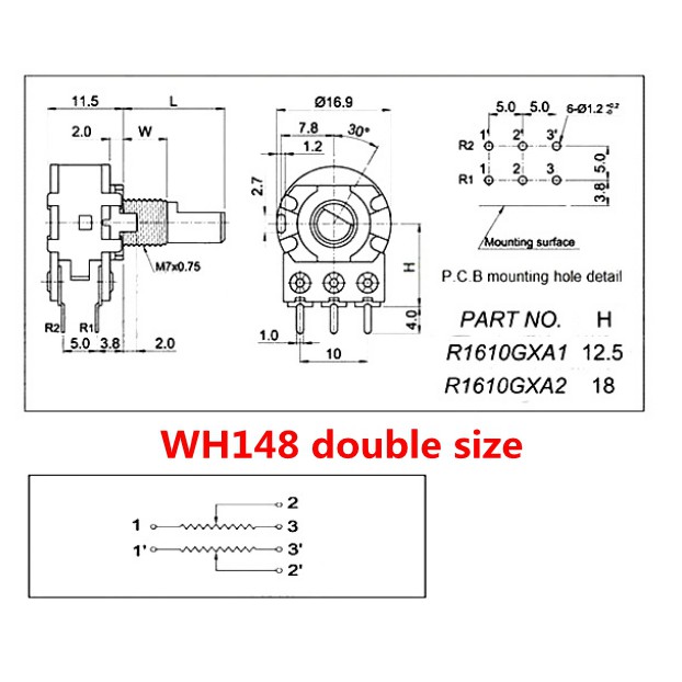 10PCS WH148 double potentiometer B1K / B2K / B5K / B10K / B20K / B50K / B100K / B500K variable resistor