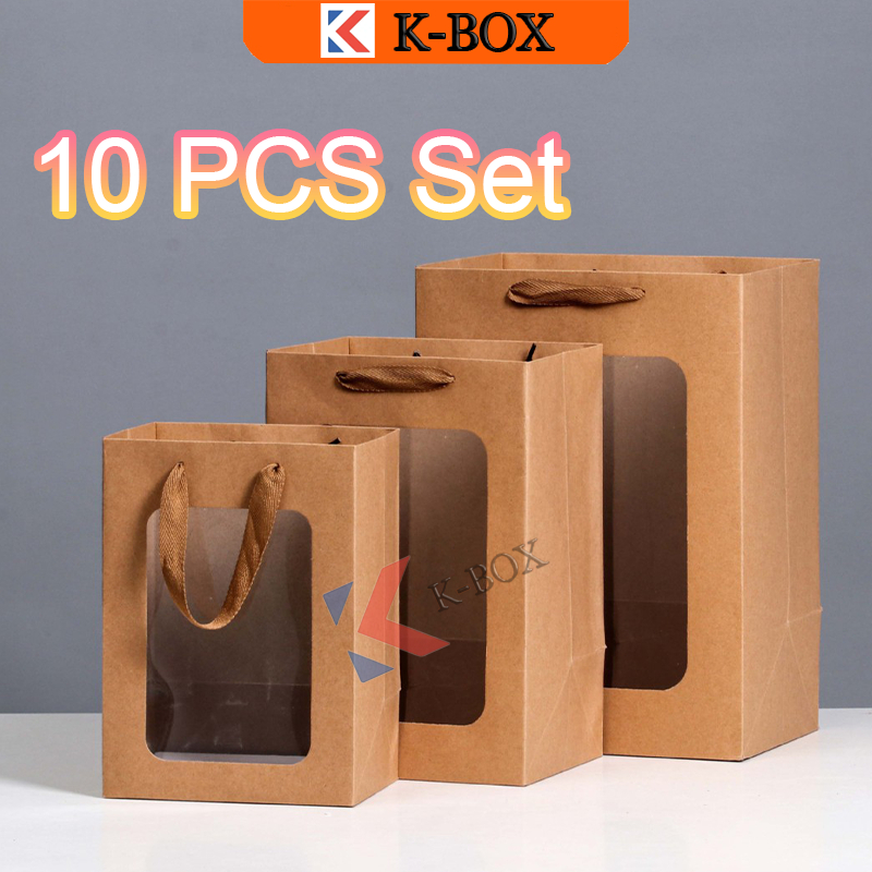 10PCS set Paper Bag Window Clear Window Gift Bags for Stuff Toys Flower Bag Gift Packaging K BOX