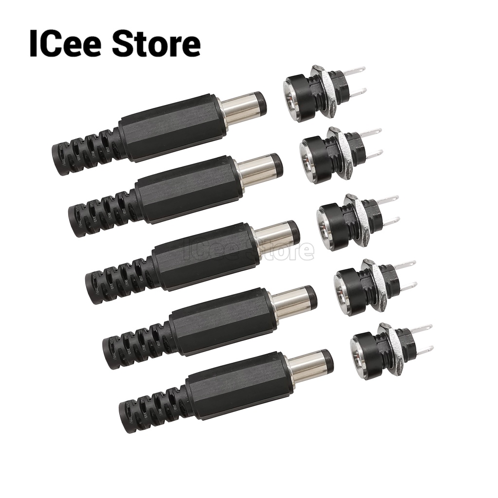 10Pcs 5Pairs DC DC-022B + DC Plug DC022 5.5x2.1mm 5.5x2.5mm Female Jack Male Plug Adapter 5.5*2.1 5.5*2.5 Supply Jacks Socket Panel Mount Connector