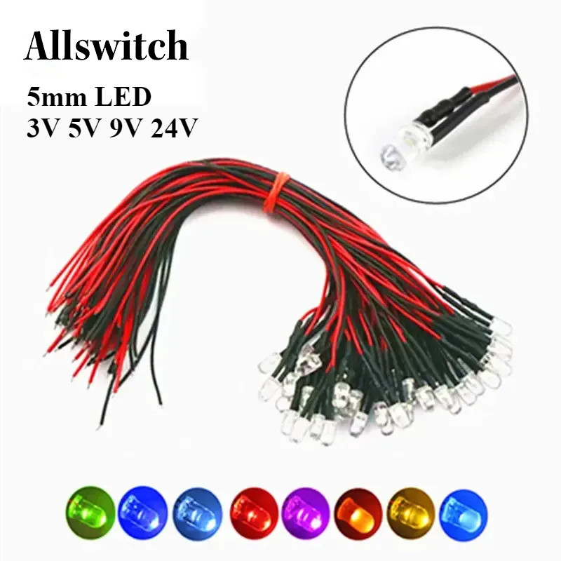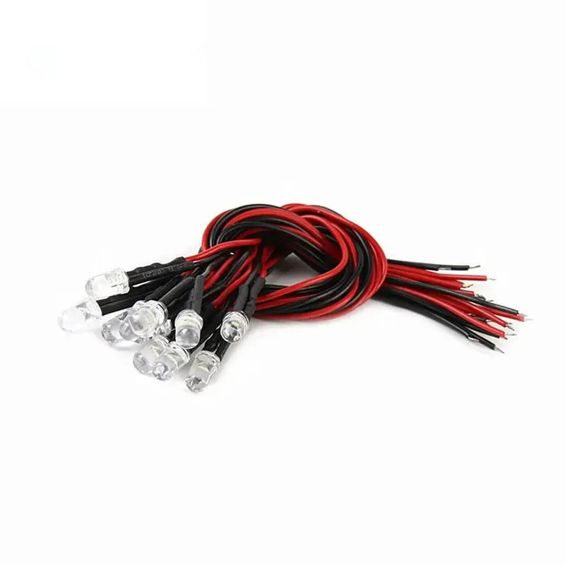 10Pcs 5mm LED 3V 5V 9V 12V 24V with 20cm Wire White Red Green Blue Yellow RGB LED Diode Lamp Decoration Light Emitting Diodes