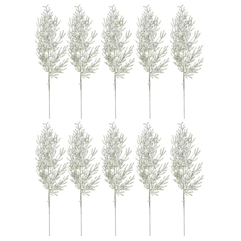 10Pcs Artificial Frosted Pine Branches Christmas Tree Faux Cedar Pine Needles Stems Fake Xmas Wreath Garland Home Party Decor