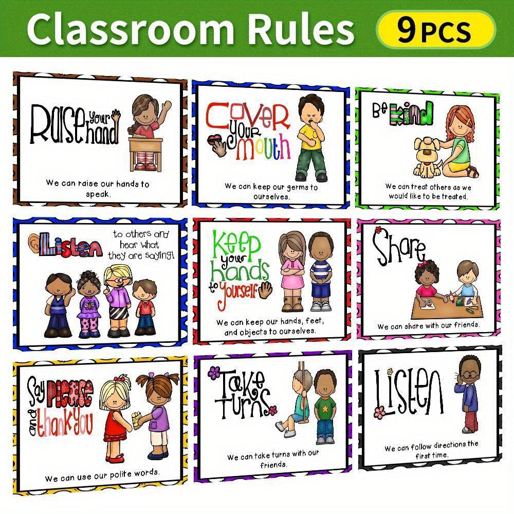 10Pcs Classroom Rules A4 Educational Posters Classroom Decoration Supplies School Posters Flashcards Kids Learning Toys