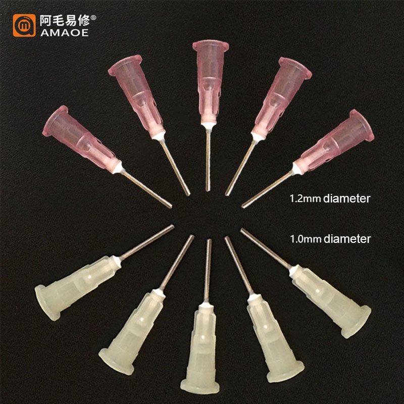 10Pcs/Lot Amaoe Dispensing Syringe Needle Tips 1mm 1.2mm for Solder Paste Flux Soldering Repair Tools