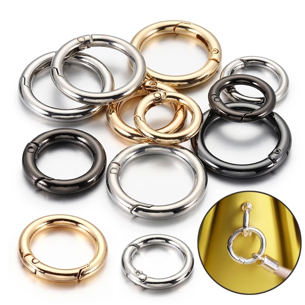 10Pcs Openable Metal Spring Clasp Ring Round Carabiner Keychain Clips Hook Dog Buckles Bag Chain Connector for Jewelry Making DIY