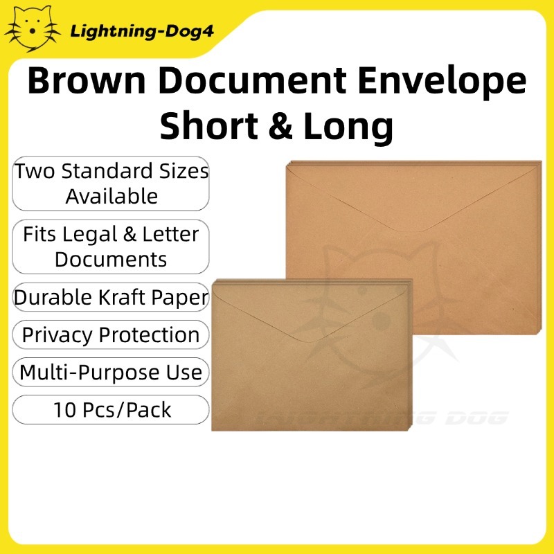 10Pcs/Pack Document Envelope - Brown Envelope - Long and Short Size school office supplies