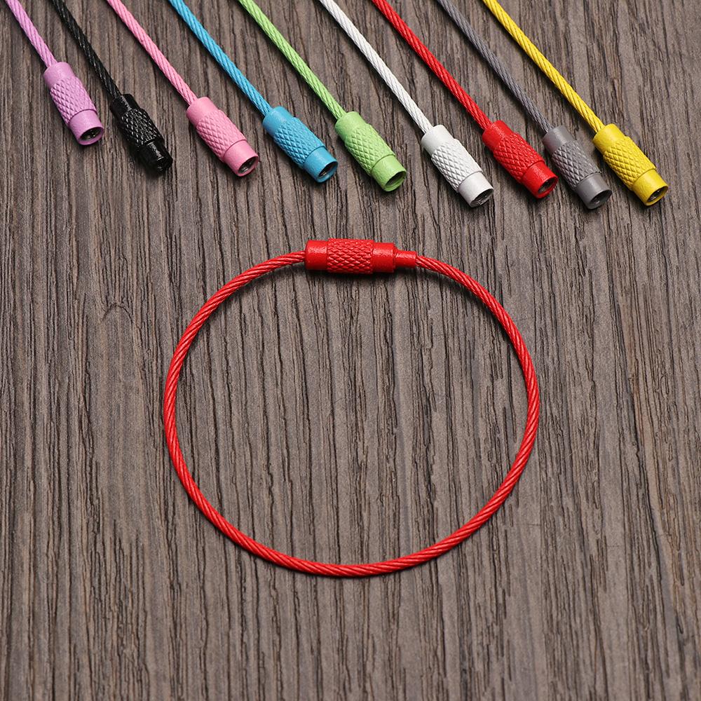 10Pcs/Set Keychain Rope, EDC Keyring Circle Loop Cable Wire Screw Lock Stainless Steel Hanging Tool Outdoor Camp Luggage Tag Holder 1.5*150mm