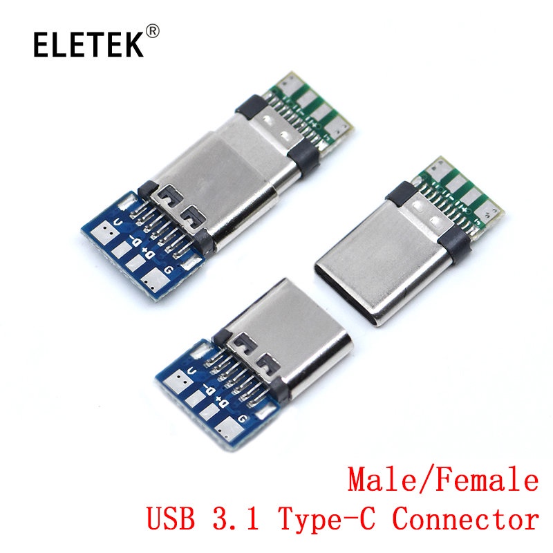10Pcs USB 3.1 Type-C Connector Male / Female Socket Receptacle Adapter To Solder Wire & Cable 24 Pins Support PCB Board