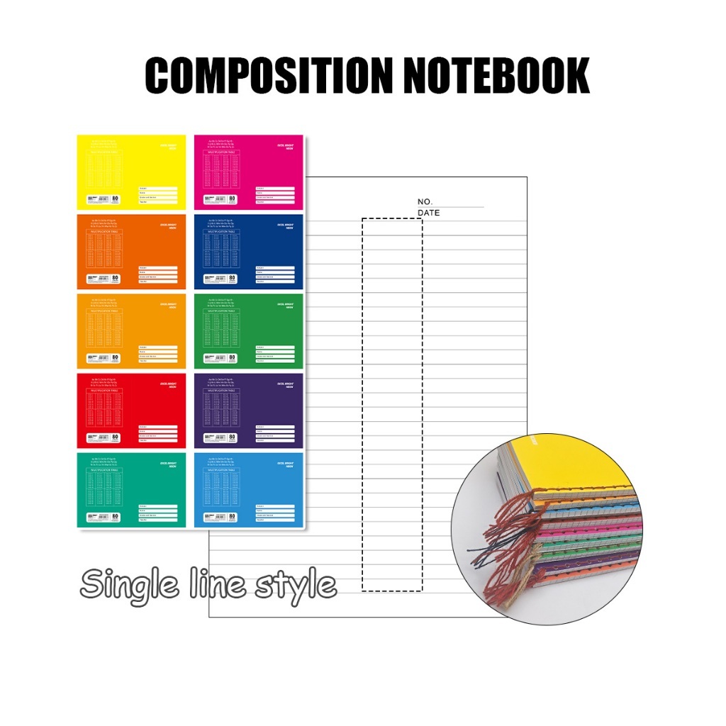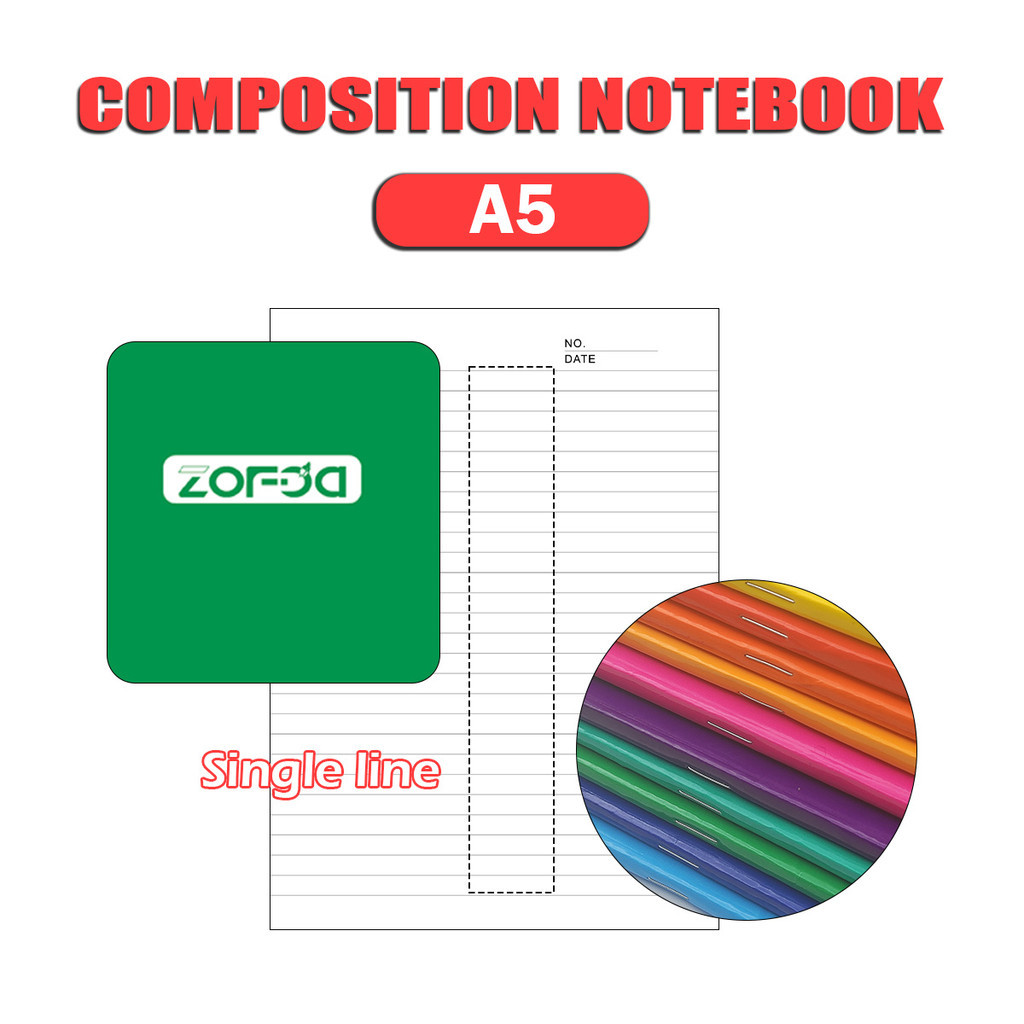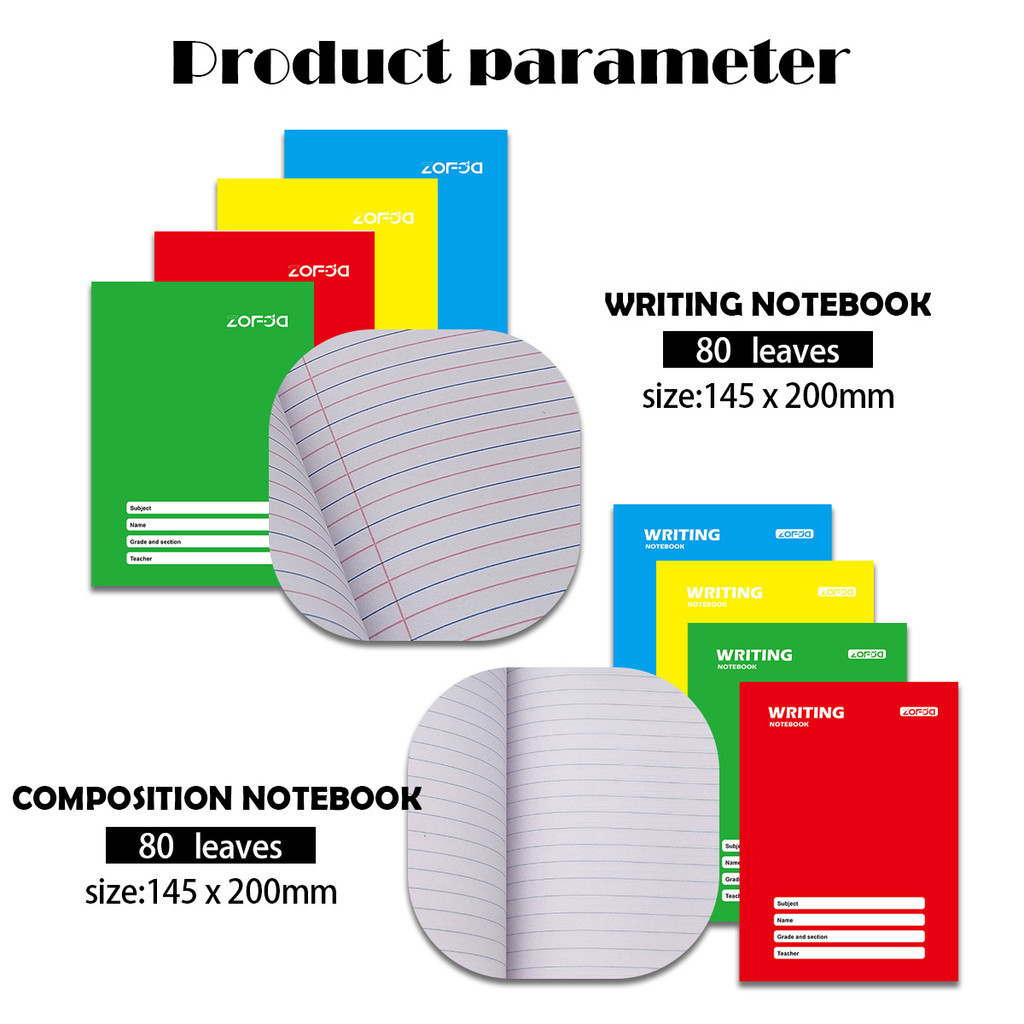 10Pcs ZOFDA A5 Composition Writing Notebook Grade 1-5 School Supplies Set for Elementary 80 Sheets