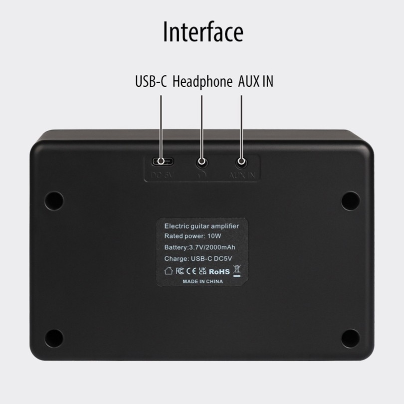 10W Rechargeable Mini Bluetooth Guitar Bass Amp Portable Amplifier with Clean and Drive Channels