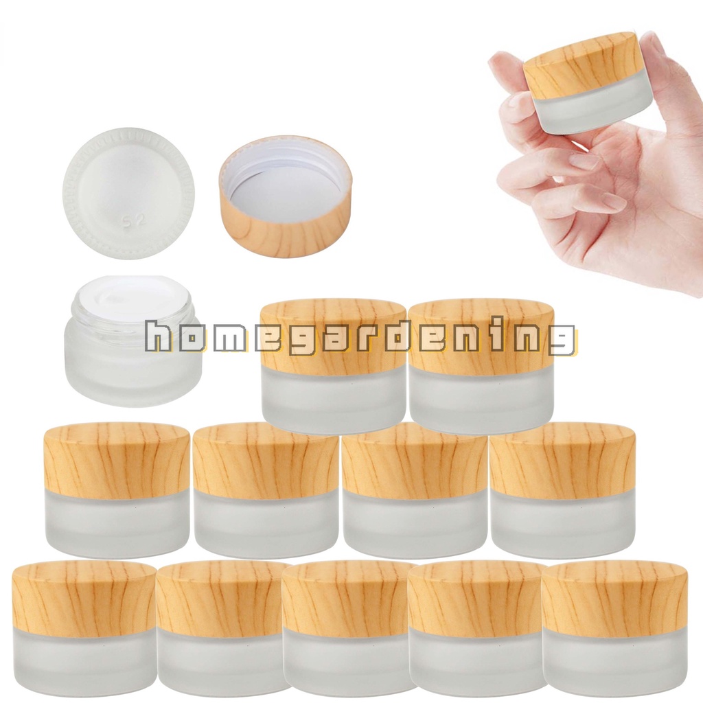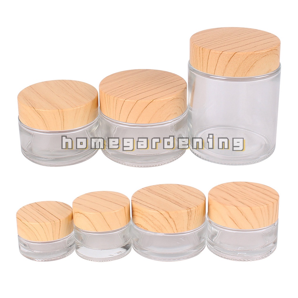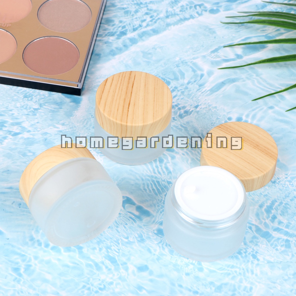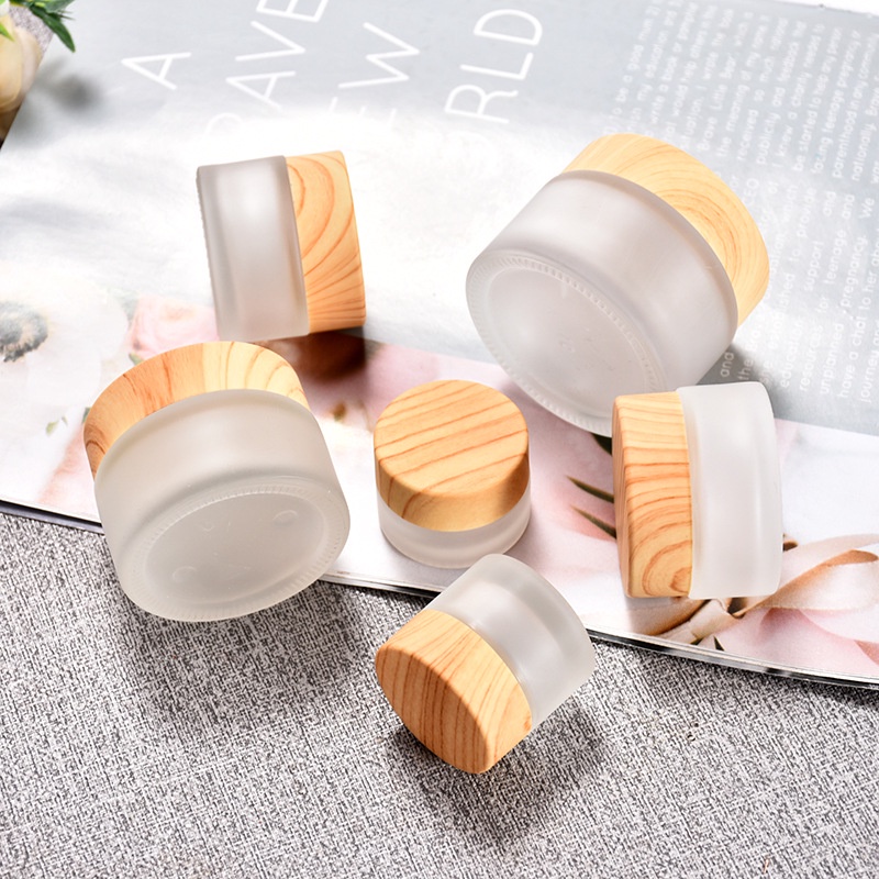10g/30g/50g Wood Grain Glass Empty Jar Pots Frosted Glass Face Cream Lip Balm Container Travel Refillabe Bottle