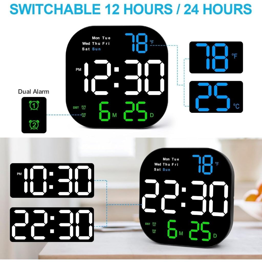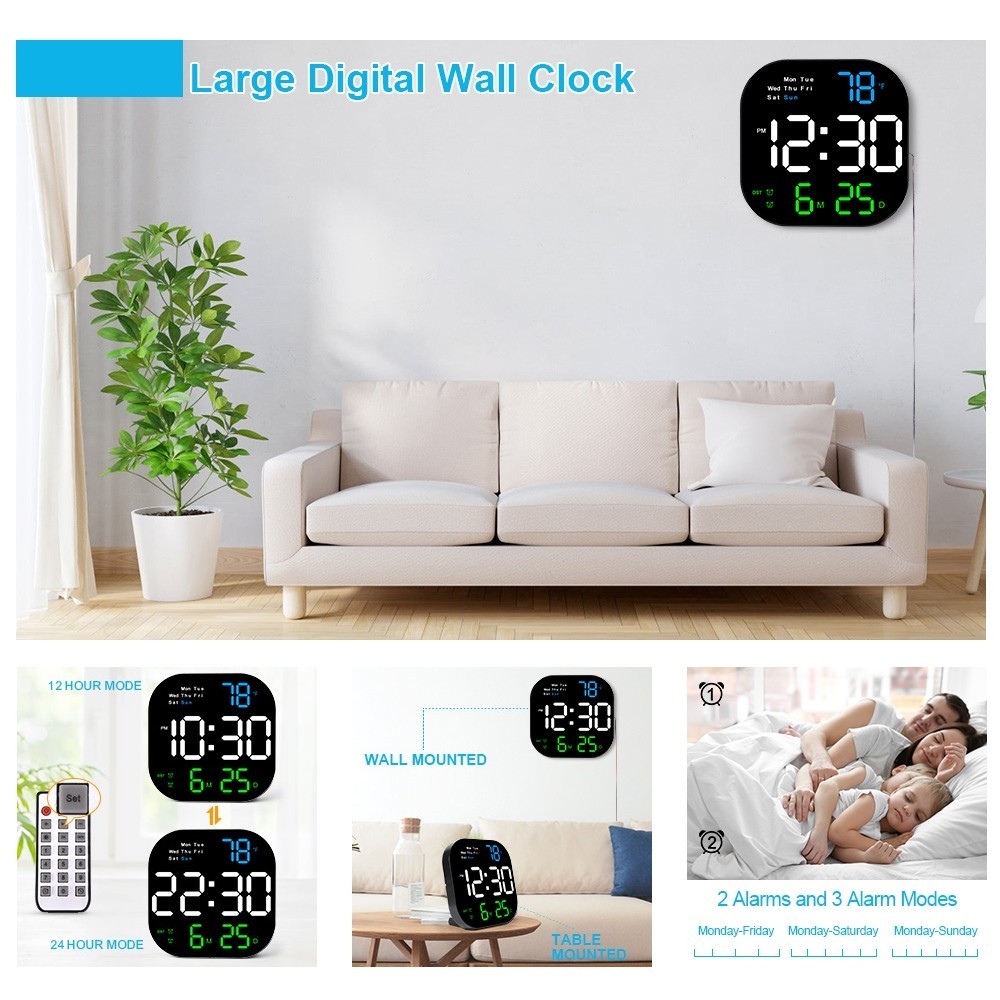 Digital Clock With Date With Temperature LED Large Screen Display Clock Nordic Wall Clock LivingRoom