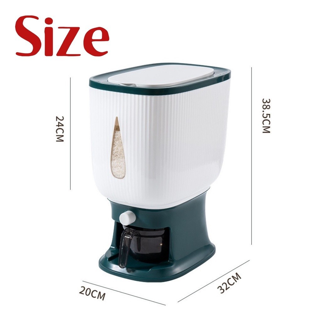 10kg Rice Dispenser and Storage with measuring cup, Whole Grains Storage, Rice Storage
