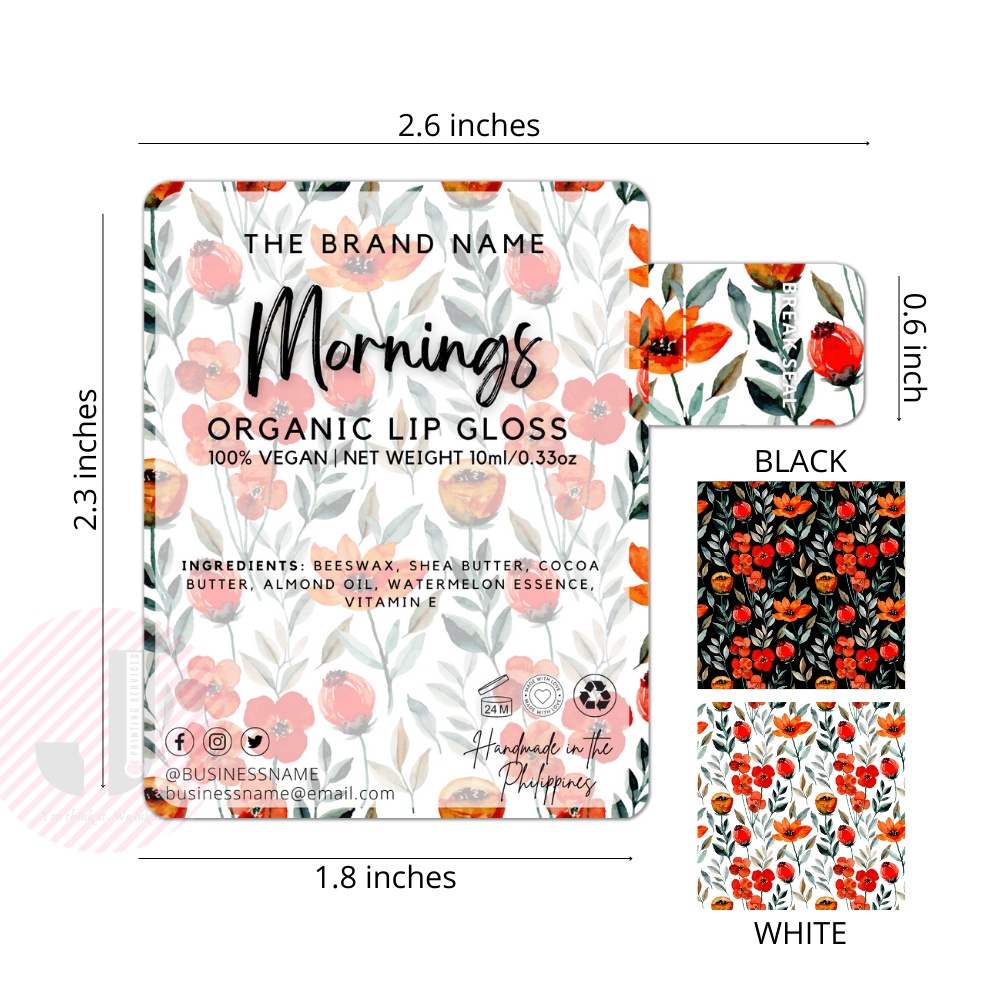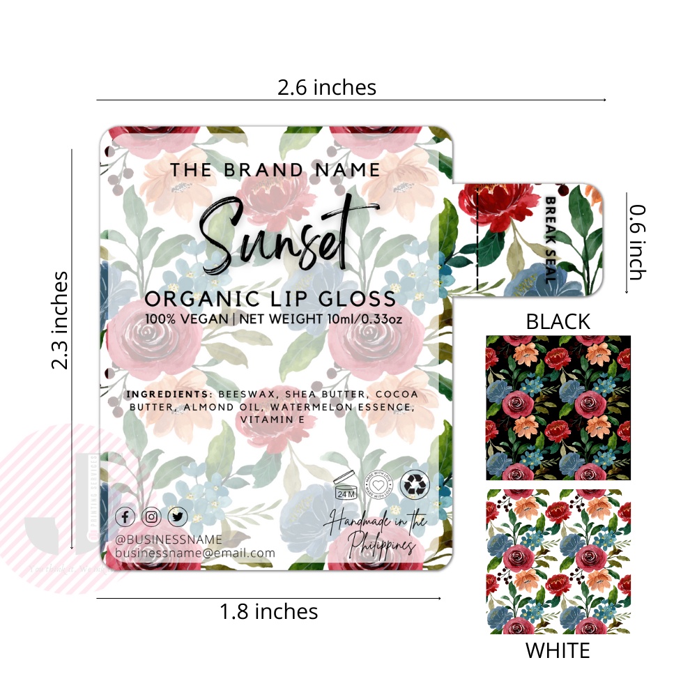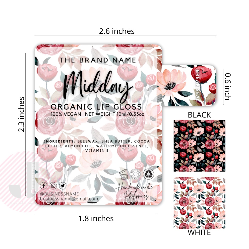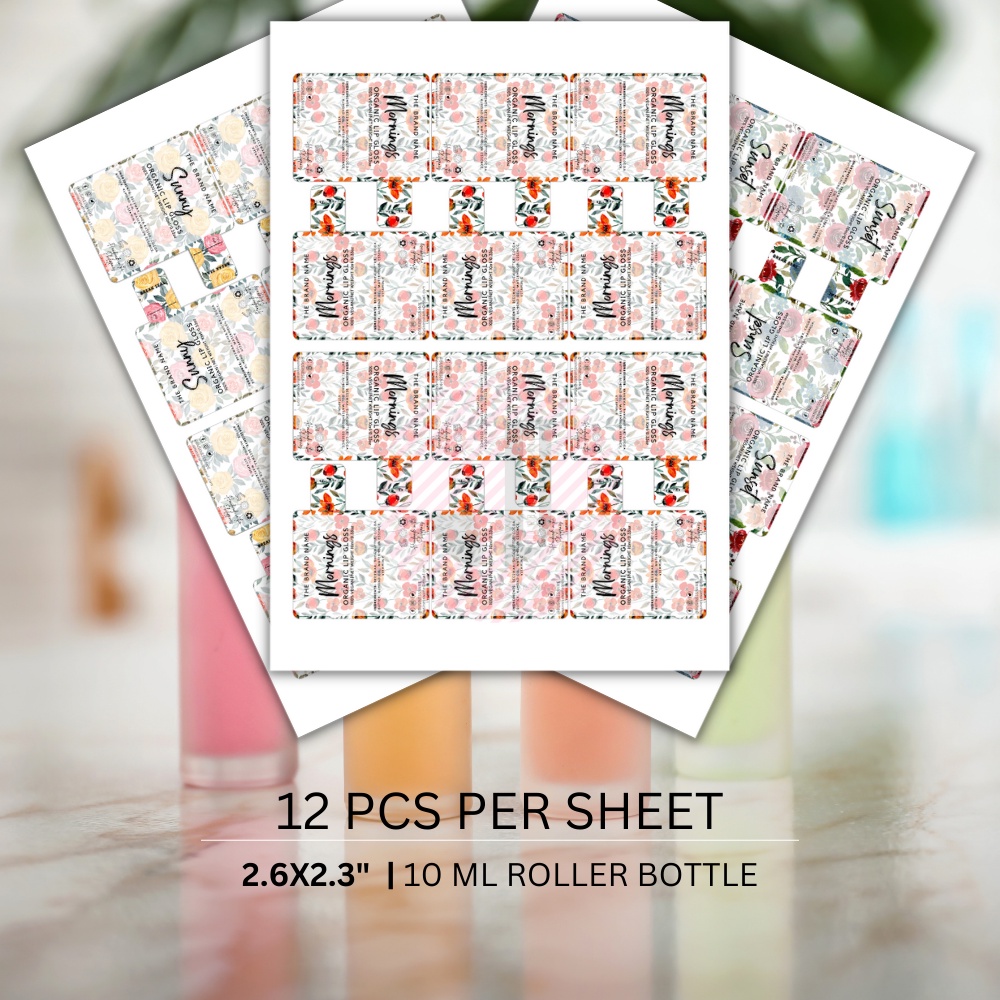 10ml Roller Bottle Floral Design Labels | Essential Oil Labels | Lip Tint / Lip Gloss Sticker Labels