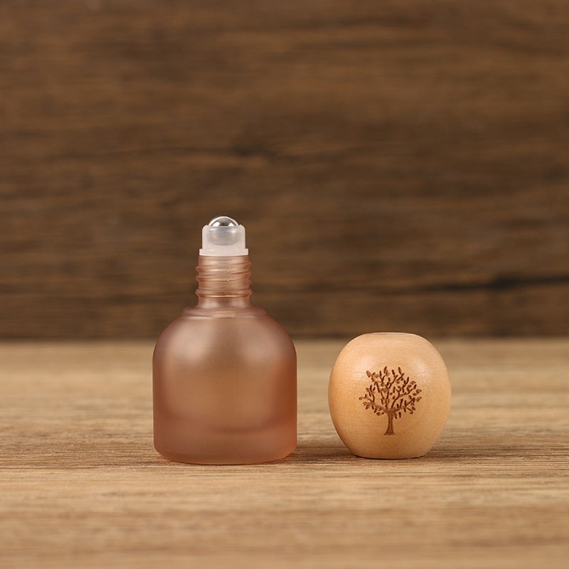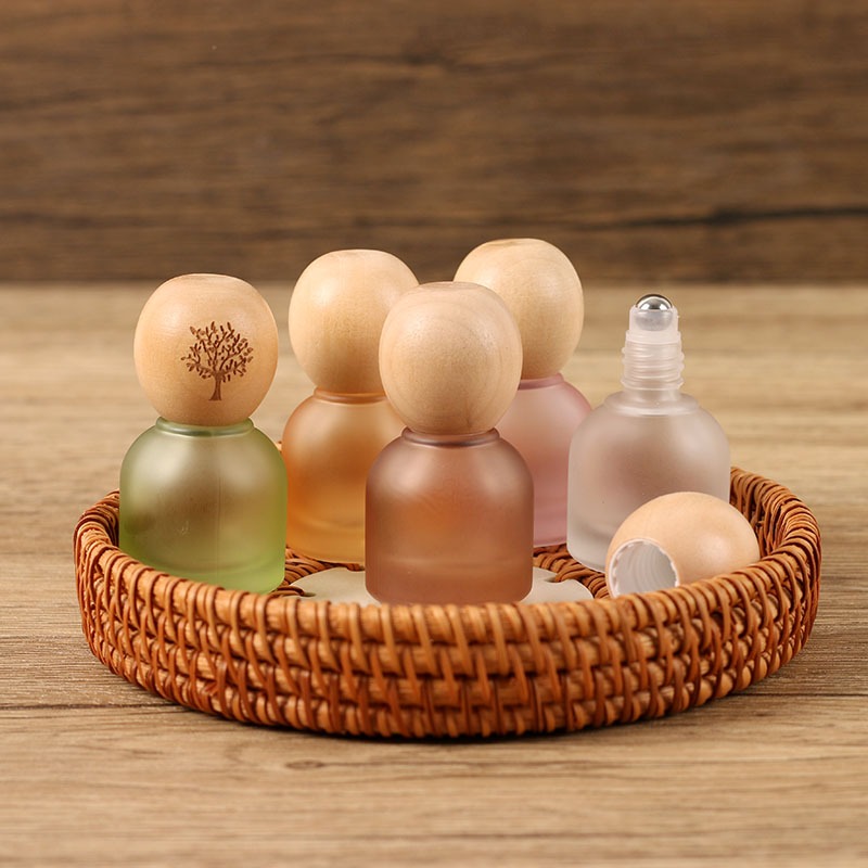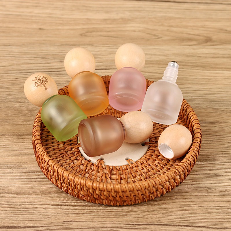 10ml Solid Wood Ball Cap Stained Glass Essential Oil Sub-bottling Perfume Log Cap Roll-On Bottle Beech Wood Cap Empty Bottle