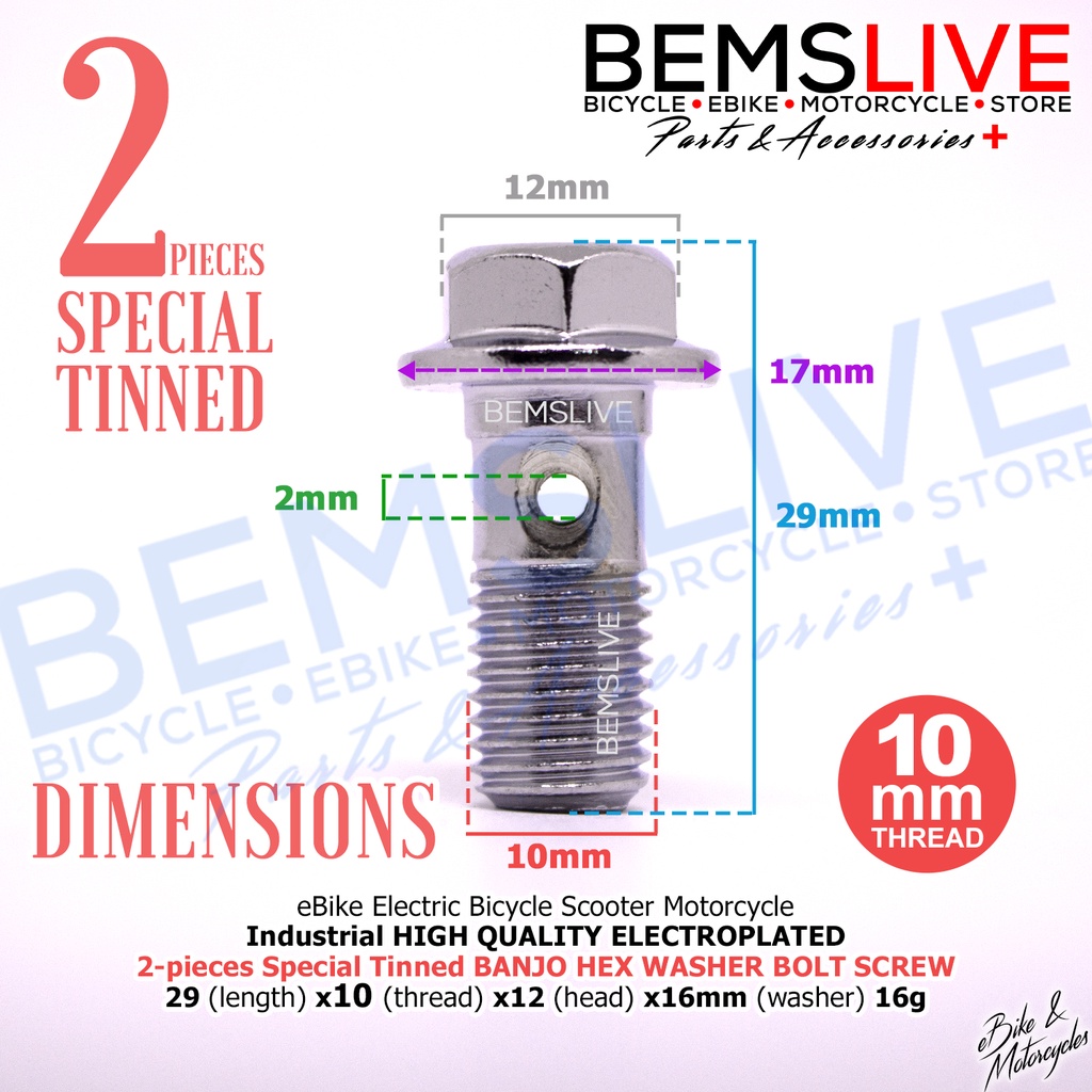 10mm Banjo Bolt Specially Tinned BANJO HEX WASHER BOLT Industrial Use for eBike Scooter Motorcycle