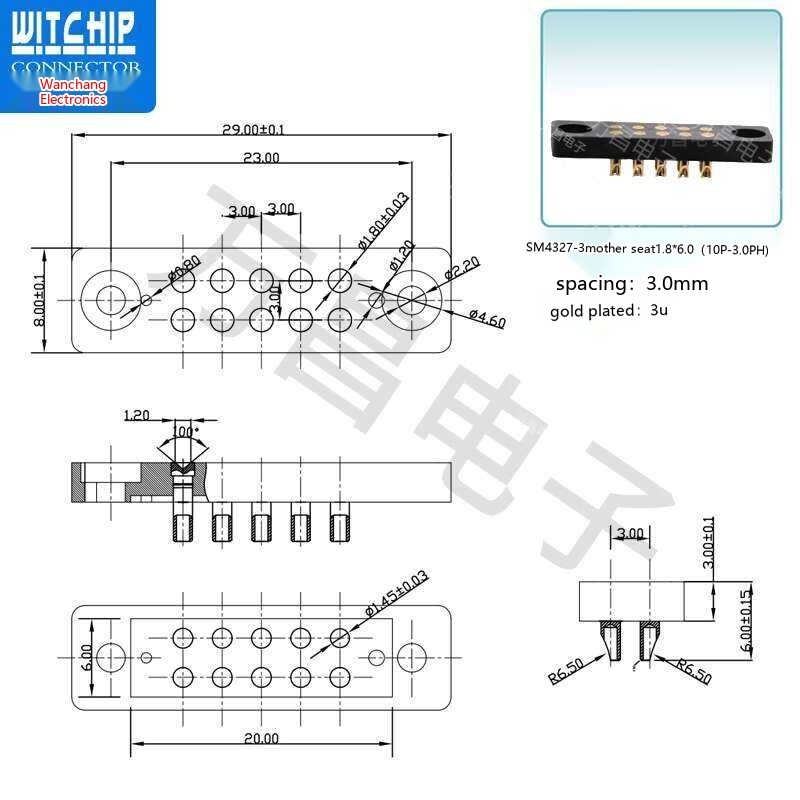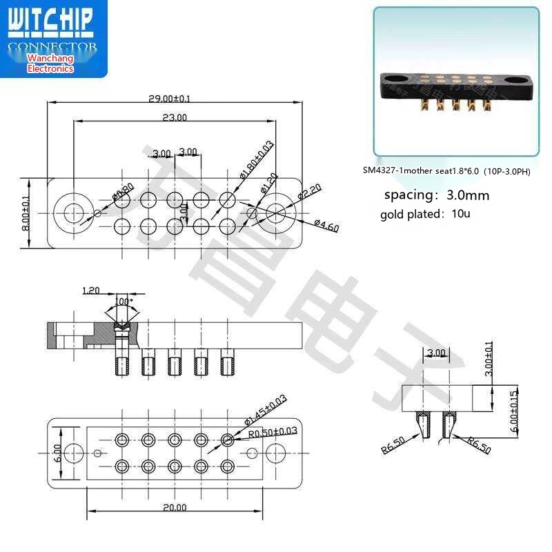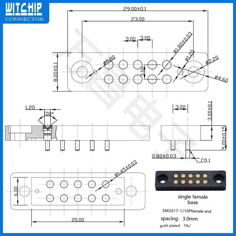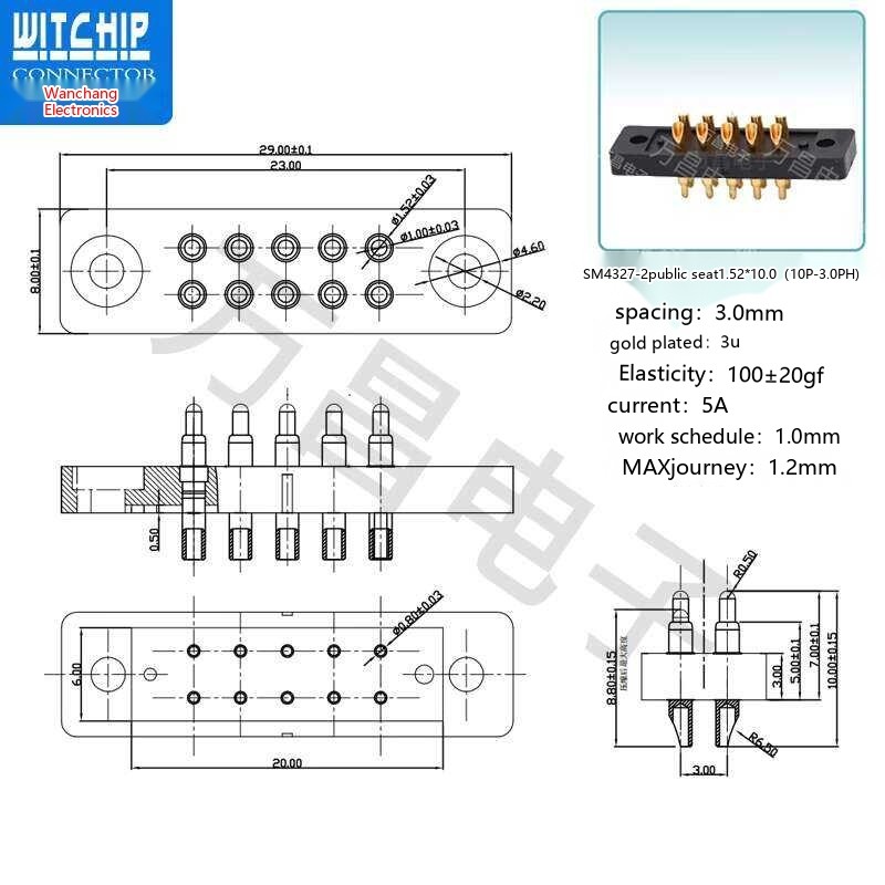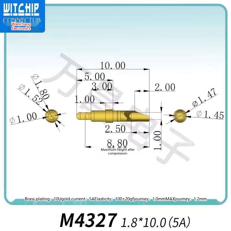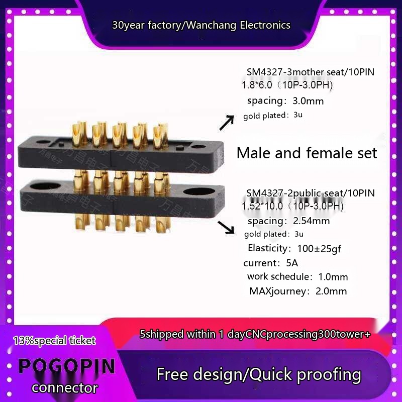 10p Probe Pogo Pin Spring Conductive Contact Charging Needle Connector Male and Female Socket