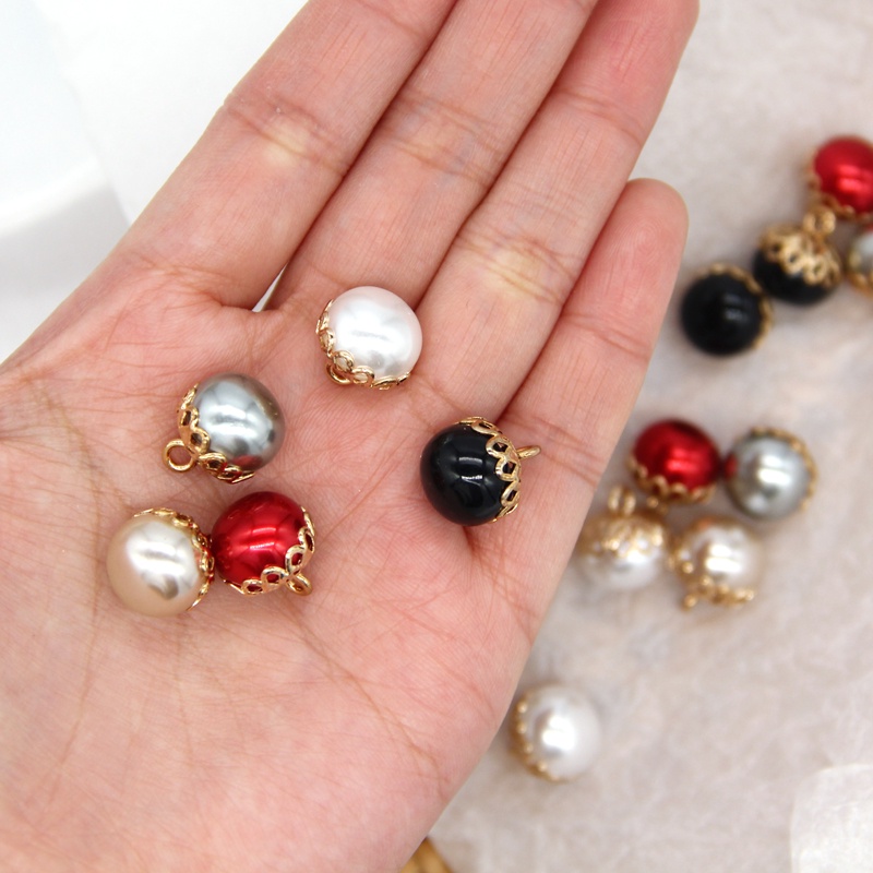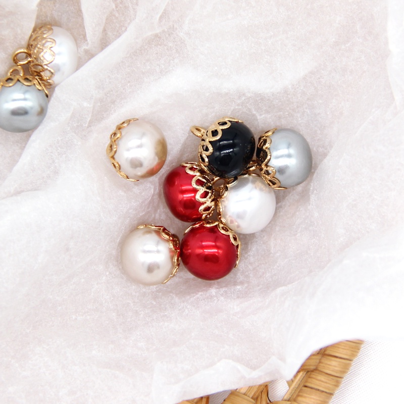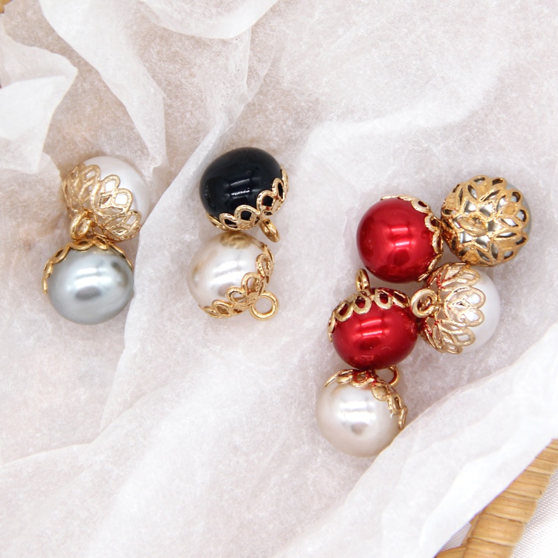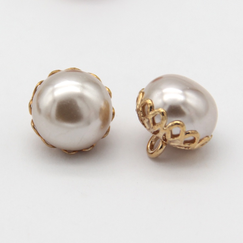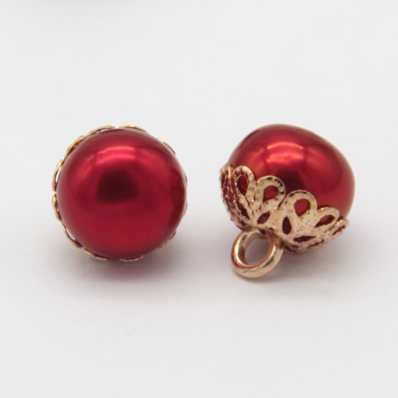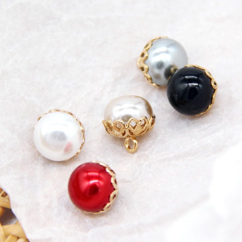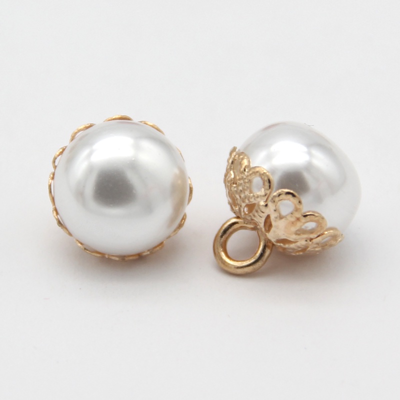 10pcs 12mm Exquisite White Red Faux Pearl Sewing Buttons With Gold Metal Flower Shank For Women Coat Shirt DIY Handmade Accessories