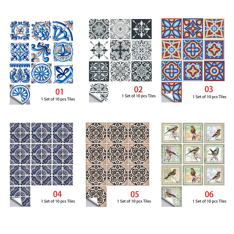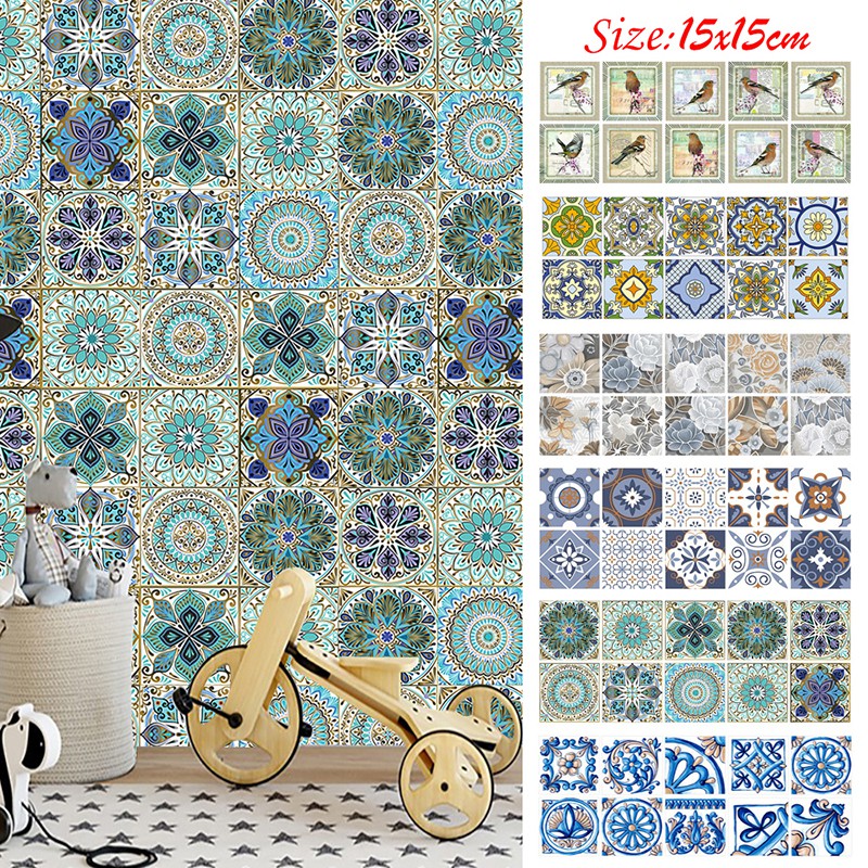 10pcs 15*15cm Retro Tiles Wall Stickers for Bathroom kitchen Tile Stickers Decor Adhesive Waterproof PVC Wall Stickers Kitchen Waist Line