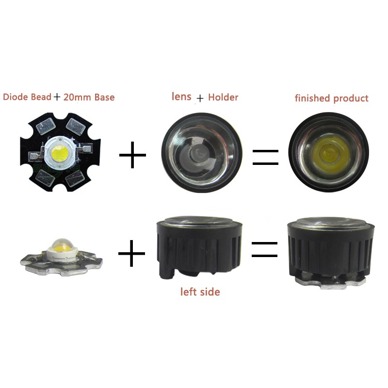 10pcs 20mm LED Lens + 22mm Black White Holder For 1W 3W 5W LED Diode Bead