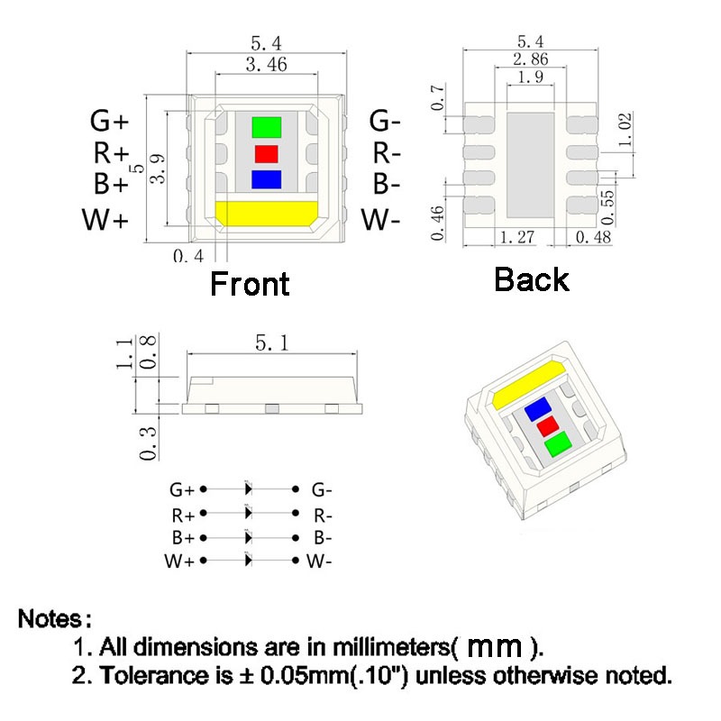 10pcs 3V 5054 RGBW Red Green Blue White LED Diode Bead Light