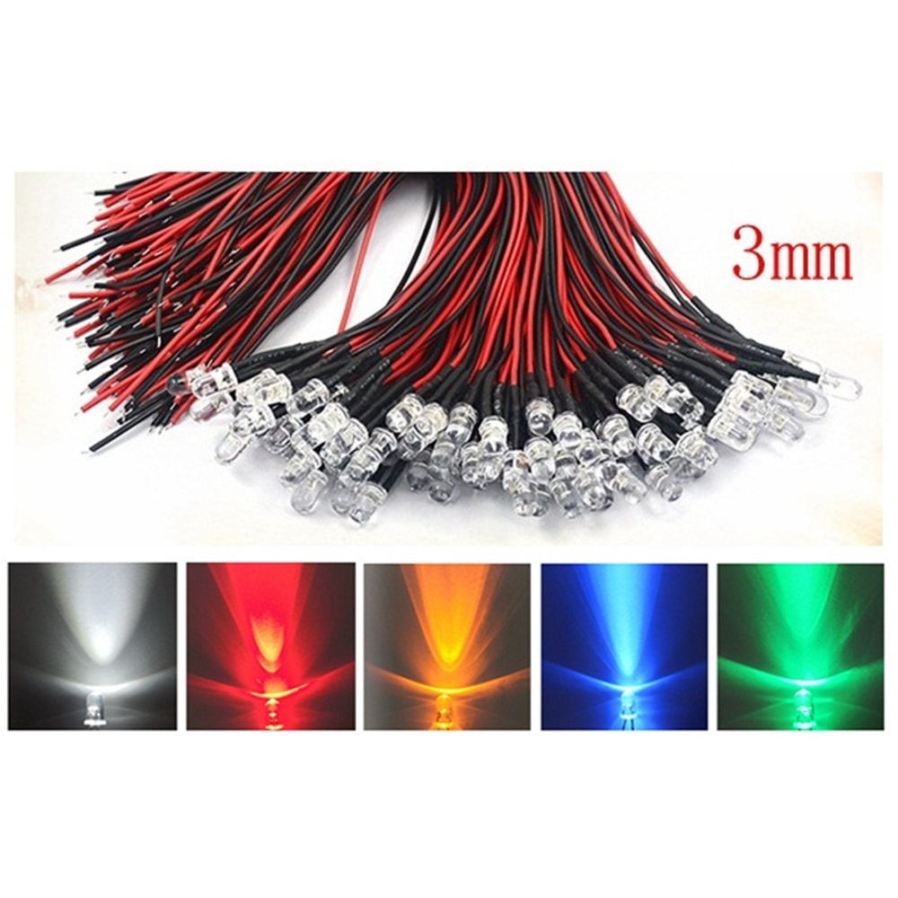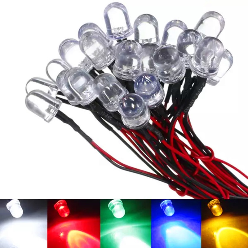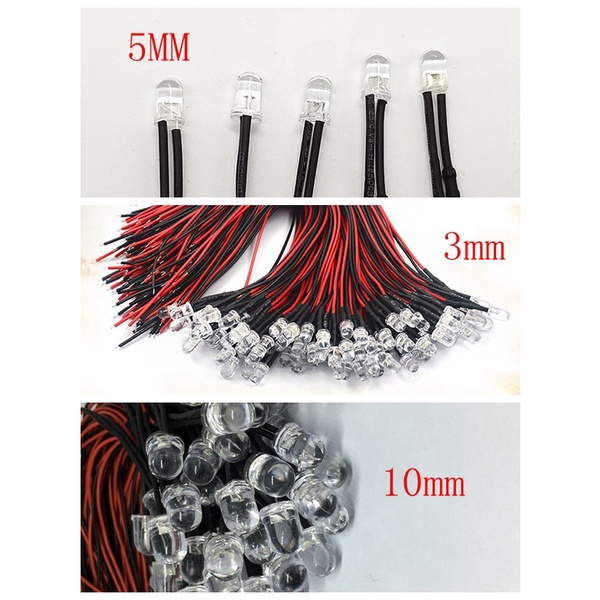 10pcs 3mm 5mm 10mm 3V LED Pre-wired General-purpose Light-emitting Diode 20cm