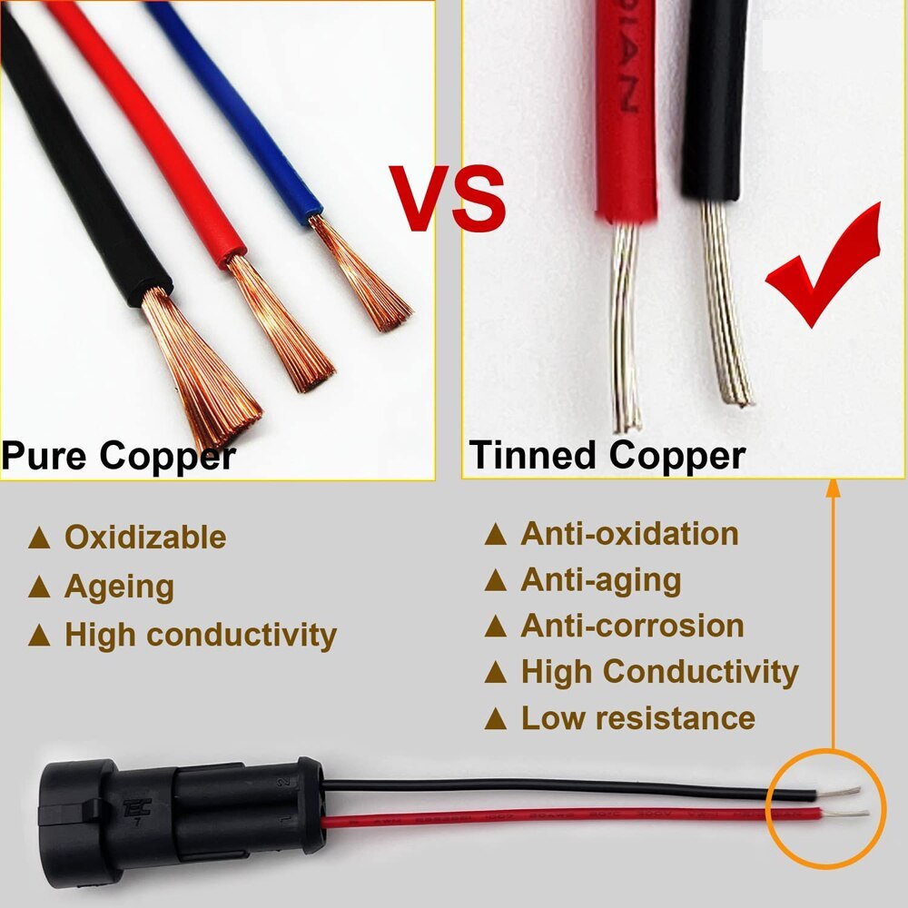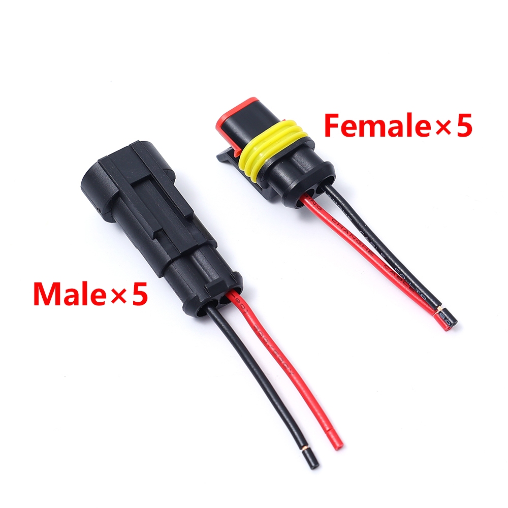10pcs 5 Sets Waterproof Automotive Male Female Electrical Connectors Plug 2-Pin Way With Wire For Car Motorcycle Scooter Marine