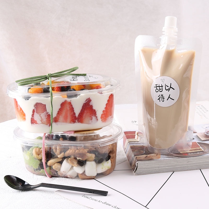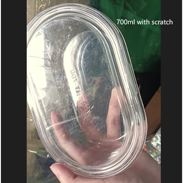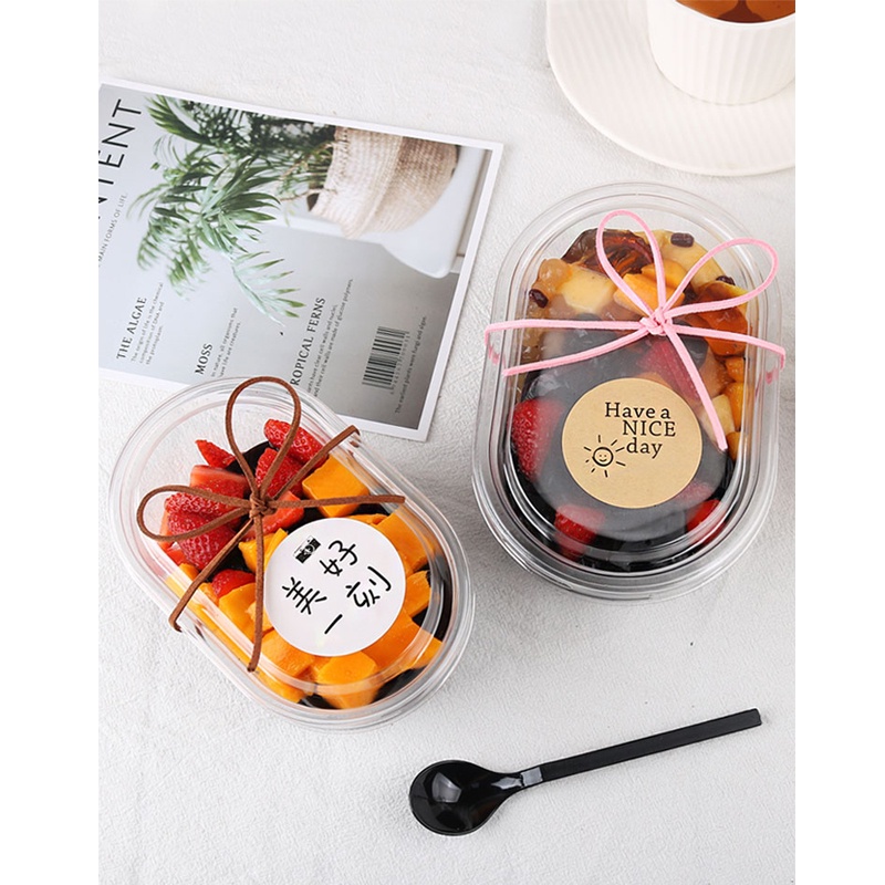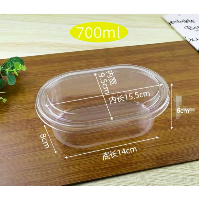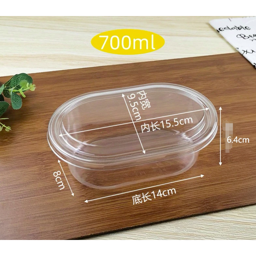 10pcs 500ML / 700ml Acylic Oval Dessert Container for Salad, Mousse Cake, clear plastic dessert