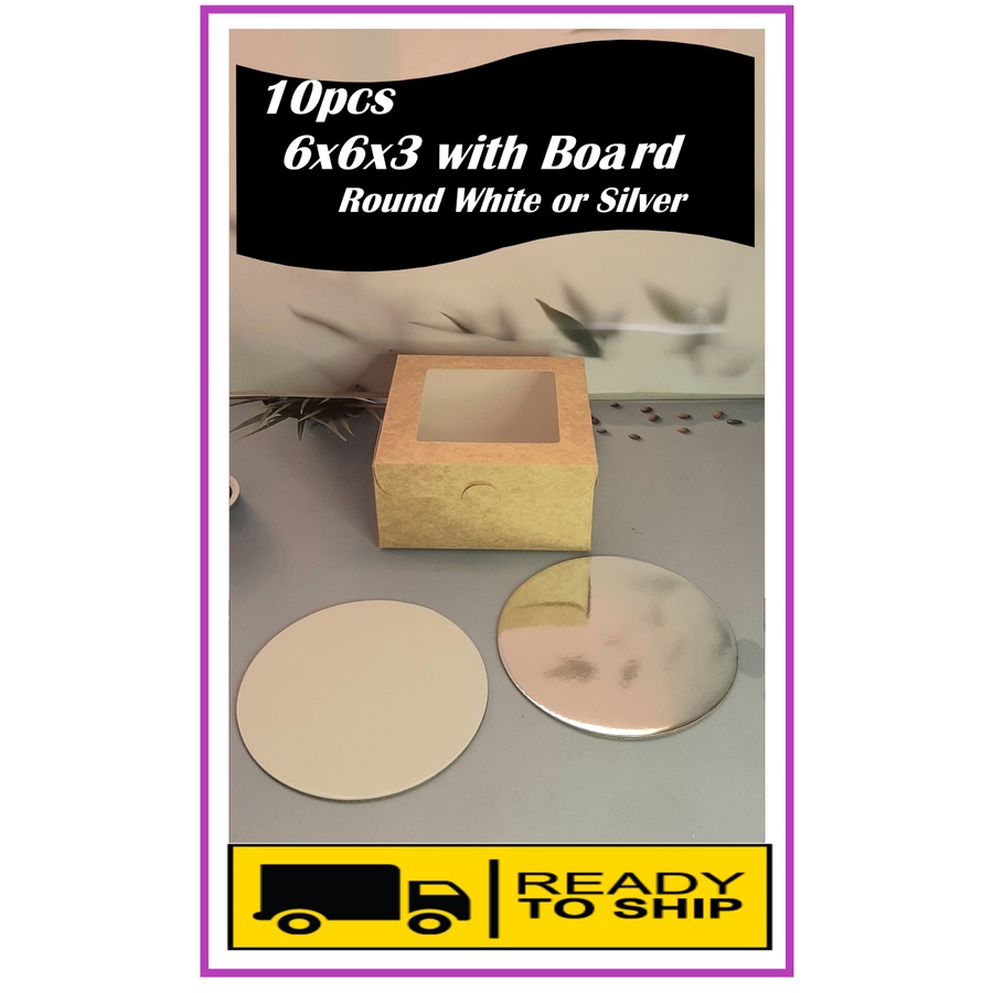 10pcs 6x6x3 Pastry Box/Cake Box with window + Round Cakeboards | High Quality | Reversible