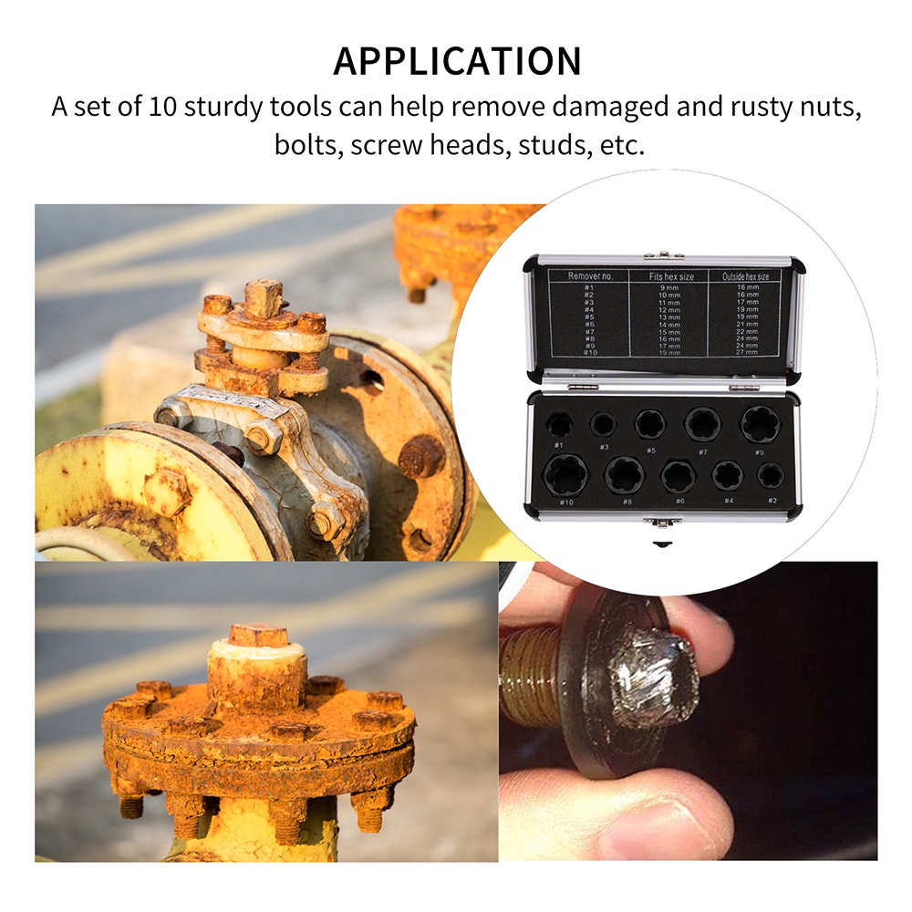 10pcs 9-19mm Damaged Rounded Bolt Nut Extractor Remover Tool Set Nuts Removal Tools Parts