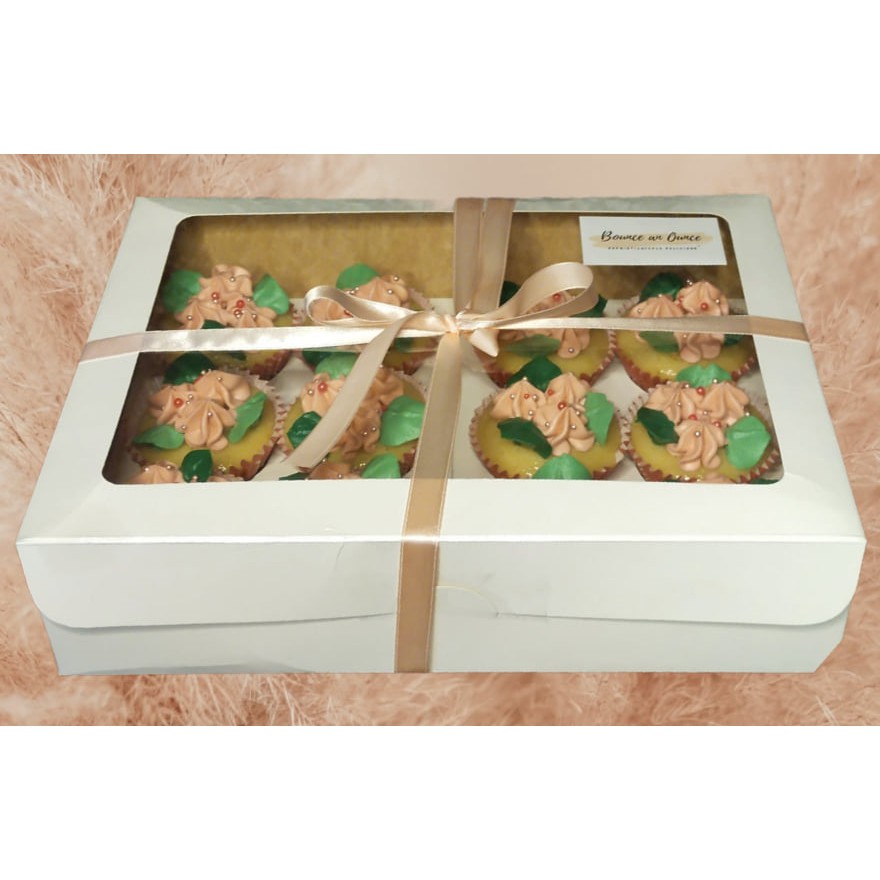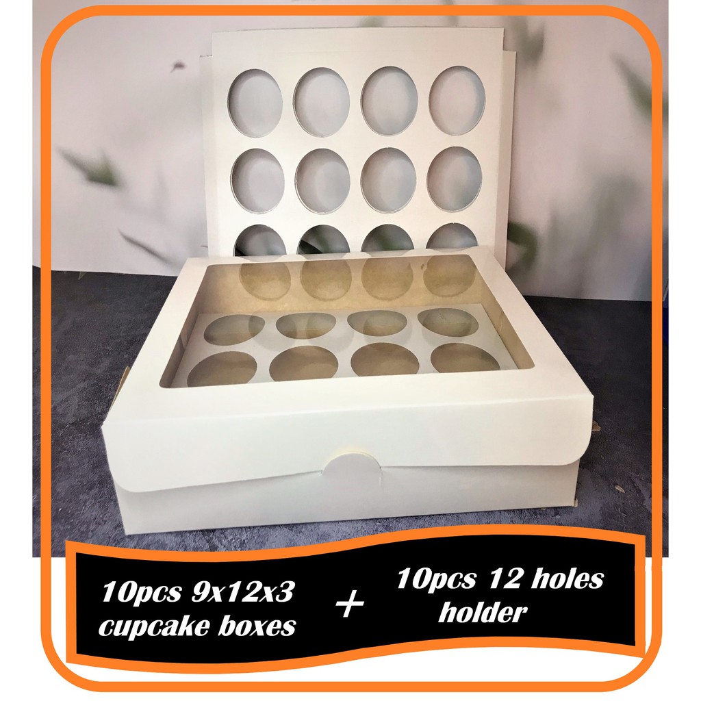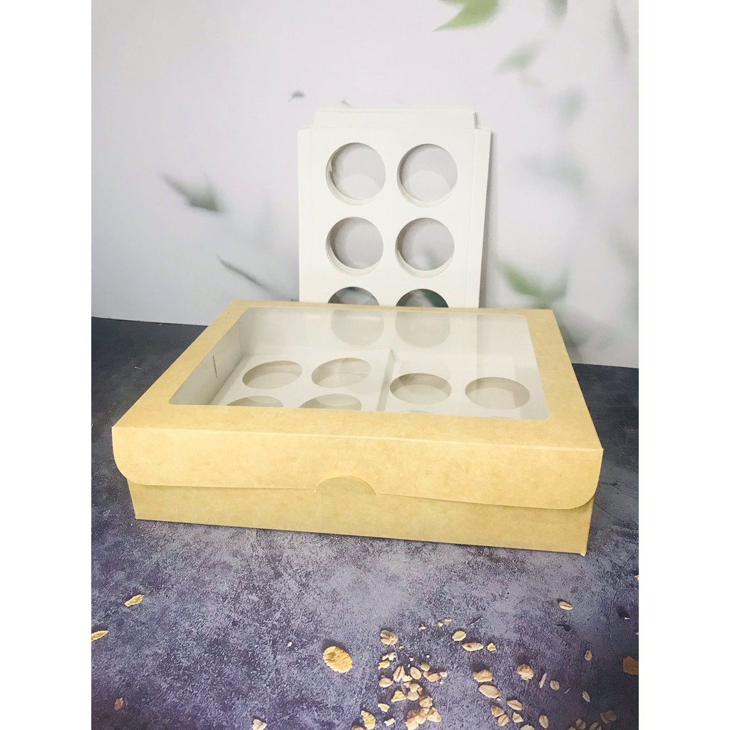 10pcs 9x12x3 | 12x9x3 Cupcake Box with Holder | With Window | Preformed | Reversible White/Kraft hi