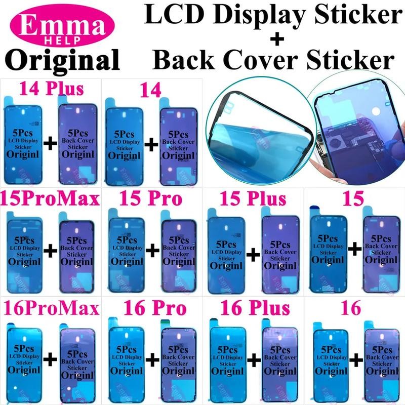 10pcs Back Cover Sticker for iPhone 14 15 Pro Max 16 Plus Back Frame Waterproof Seal Bezel Display Adhesive LCD Screen Frame