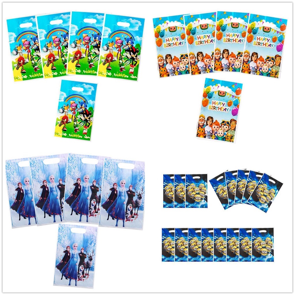 10pcs Cartoon Sonic The Hedgehog Theme Plastic Candy Loot Bag Handle Bag Kids Girls Favor Birthday Party Decoration Supplies